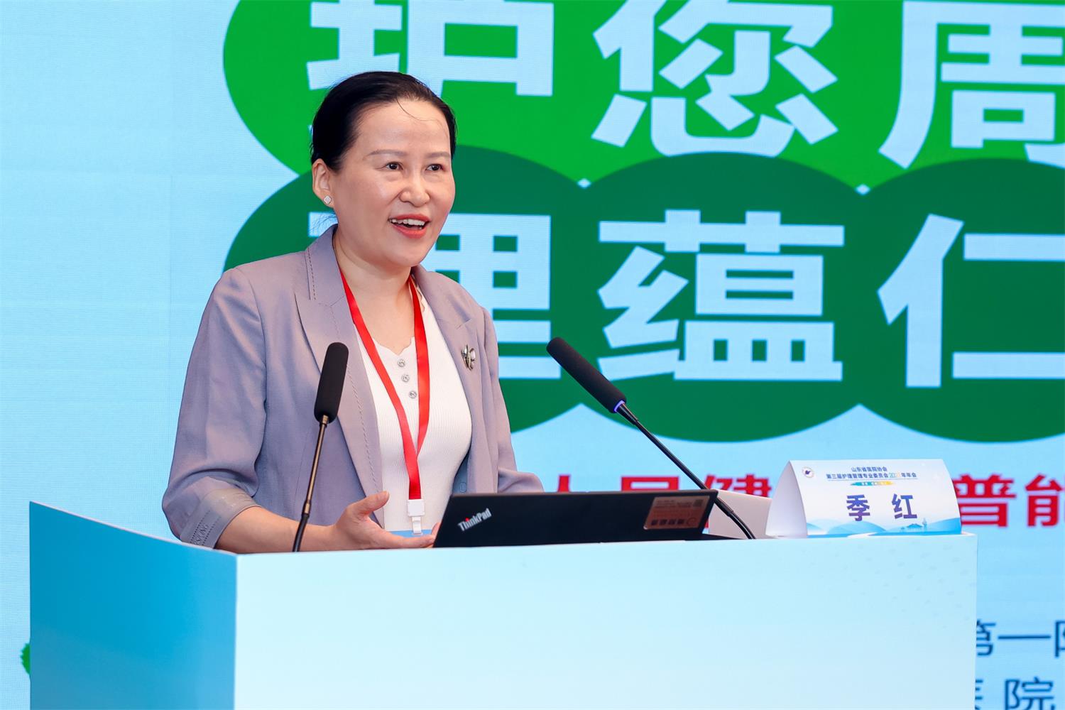 山东第一医科大学附属第一医院(山东省千佛山医院)护理部主任季红聚焦“科普驱动工作绩效”主题分享实践经验。季红主任指出,国家政策推动科普发展,护理工作与健康科普双赋能。她重点介绍了“精准分层、场景渗透、中医赋能、科技加持、情感链接”破局五式,提及聚焦基层,结合居民健康素养现状,通过建立观看期待、营养氛围、抓住关注重点推进科普工作。