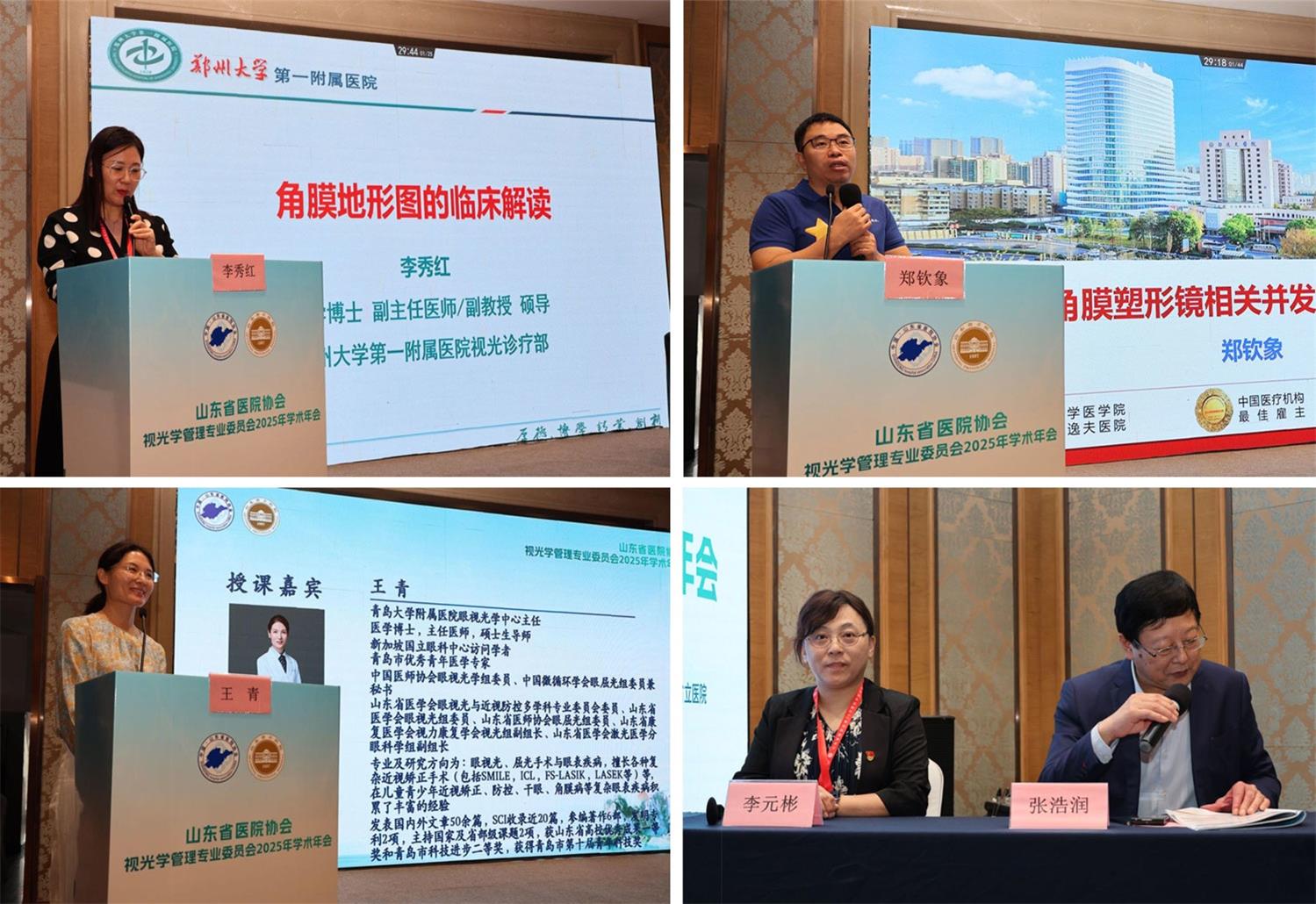 学术会议环节内容丰富、观点前沿。郑州大学第一附属医院李秀红就《角膜地形图临床解读》作专题报告,系统阐释了角膜地形图在临床应用中的关键要点;浙江大学附属邵逸夫医院郑钦象分享了《角膜塑形镜相关并发症及处理》,为临床应对角膜塑形镜并发症提供了专业指导;青岛大学附属医院王青围绕《巩膜镜在屈光眼表中的应用》展开讲解,拓宽了巩膜镜临床应用的认识视野。本环节由张浩润、李元彬共同主持。