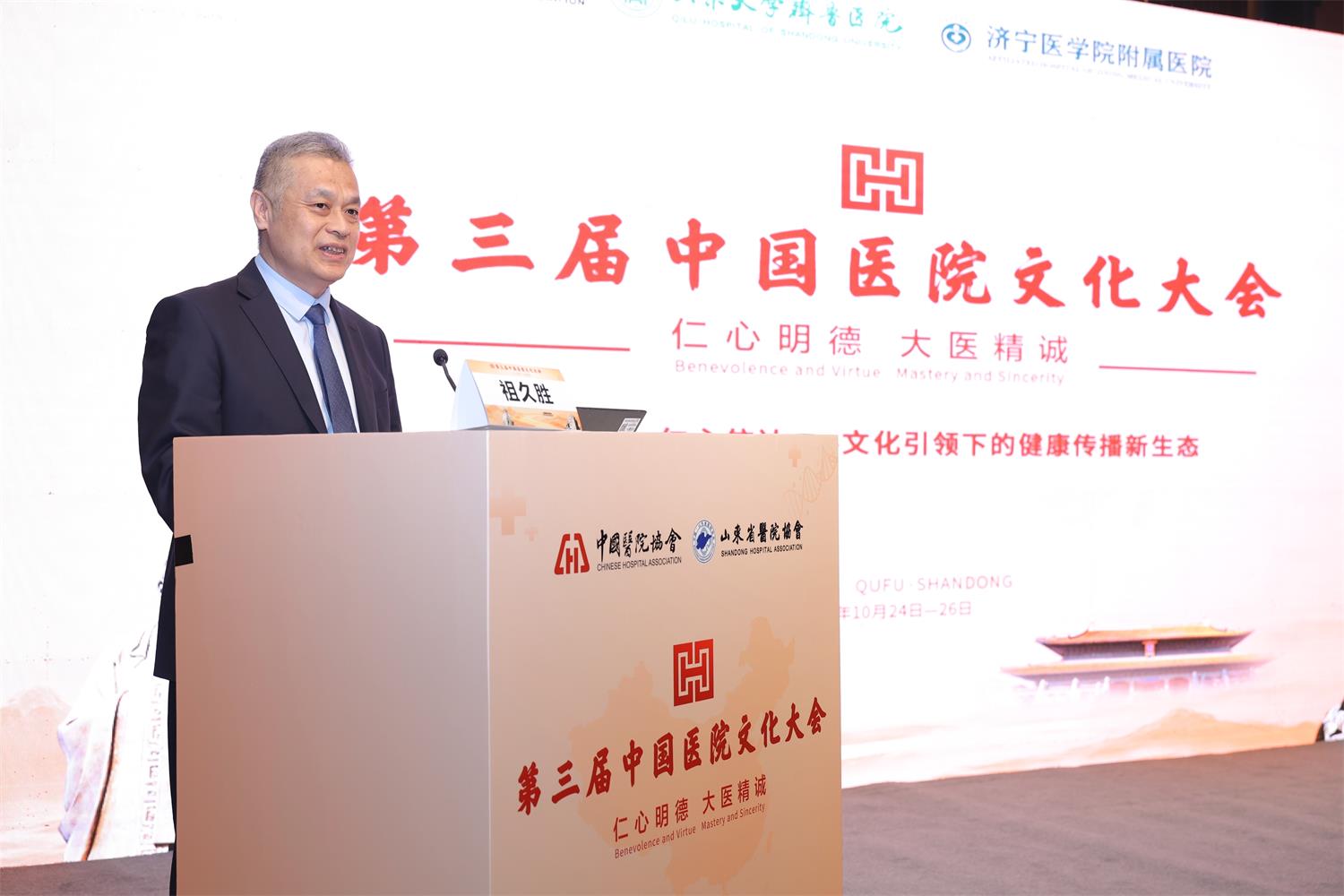 10月25日,由山东省医院协会主办,山东省医院协会健康传播专委会、山东大学齐鲁医院、济宁医学院附属医院共同承办的山东省医院协会健康传播专业委员会2025年学术年会暨首届山东省公立医院健康科普创新大赛在山东曲阜成功举办。此次会议作为第三届中国医院文化大会平行分会场,以“博施济众仁心信达—文化引领下的健康传播新生态”为主题同步召开,旨在共商新时代文化引领下健康传播的创新发展之路。山东省医院协会会长赵升田、山东大学齐鲁医院党委副书记张欣平、济宁医学院附属医院党委副书记祖久胜出席开幕式并致辞。全省各级医疗机构宣传思想文化工作负责人和业务骨干100余人齐聚一堂,共同见证这一健康传播领域的盛会。山东省医院协会健康传播专委会主任委员、齐鲁医院党委宣传统战部部长李宁主持会议开幕式。