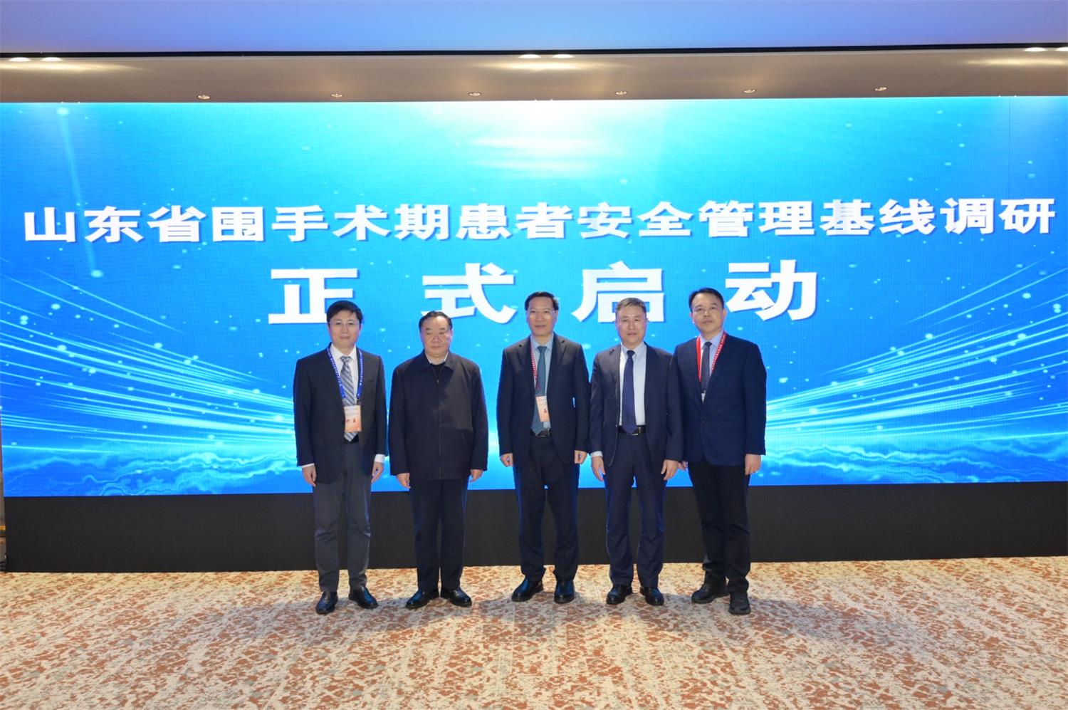会议同步举行了“山东省围手术期患者安全管理基线调研启动仪式”,由中国医师协会副会长、山东省医师协会会长孙洪军、吴向东、王默、济宁医学院附属医院党委委员、副院长于宝华、山东第一医科大学附属省立医院医务部主任夏庆华共同开启调研仪式。