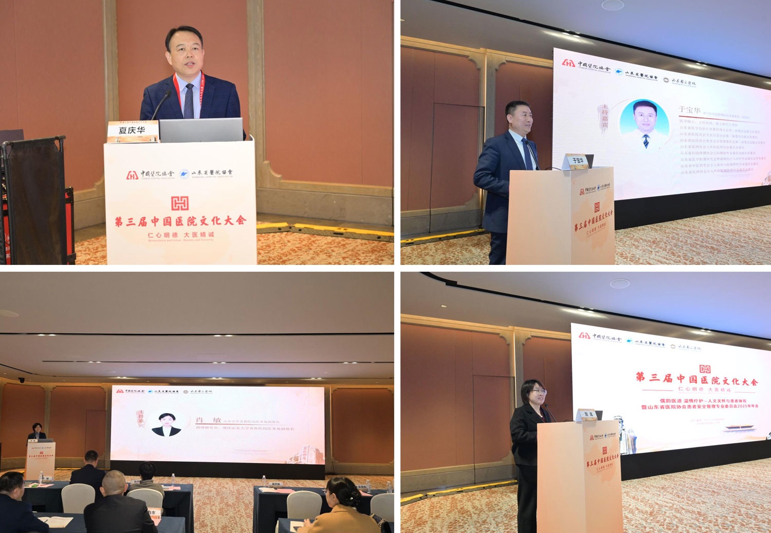 本次学术会议阶段,特邀多位全国知名专家学者开展专题分享与实践指导。孙洪军、王默分别以《医务管理者和医务人员素养的提高》《〈医患论语〉中蕴含的“省医”患者安全文化》为题进行了学术讲座,以丰富的文化内容,具体的真实案例,给大家带来了深刻的思想启迪和精神洗礼。同时邀请了浙江省人民医院原医务处处长张勤、北京大学第一医院医务处处长于楠分别以《医学人文,让医患都觉得温暖的实践——把梅奥中国化》《文化引领,数智驱动-迈向精益化的患者安全管理》为题,聚焦实践应用,进行了深入的讲解,给参会代表提供了具体可行的实践路径。学术会议阶段由夏庆华、于宝华、山东大学齐鲁医院医务处副处长肖敏、山东大学齐鲁第二医院医务部副主任刘岚主持。一场场精彩绝伦且干货满满的授课,成功吸引大批代表到场,全场座无虚席,氛围热烈。