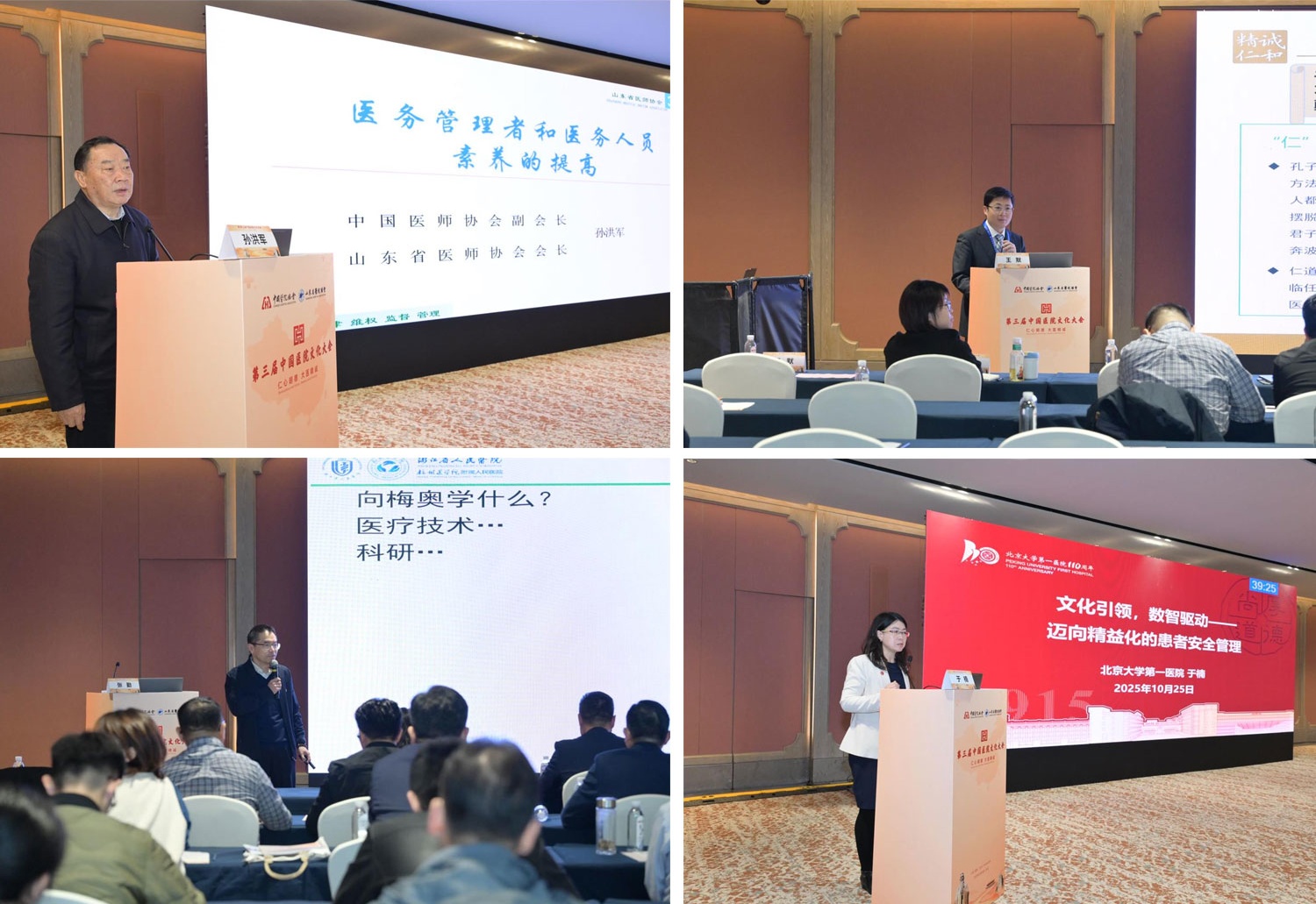 10月25日,山东省医院协会患者安全管理专业委员会2025年年会在曲阜顺利召开。大会作为中国医院协会与山东省医院协会共同主办的中国医院文化大会——平行会议三“人文关怀与患者体验”同步举行。山东第一医科大学(山东省医学科学院)党委副书记、省立医院党委书记吴向东、山东省医院协会会长赵升田参加开幕式并致辞,山东省立医院党委副书记王默主持开幕式。