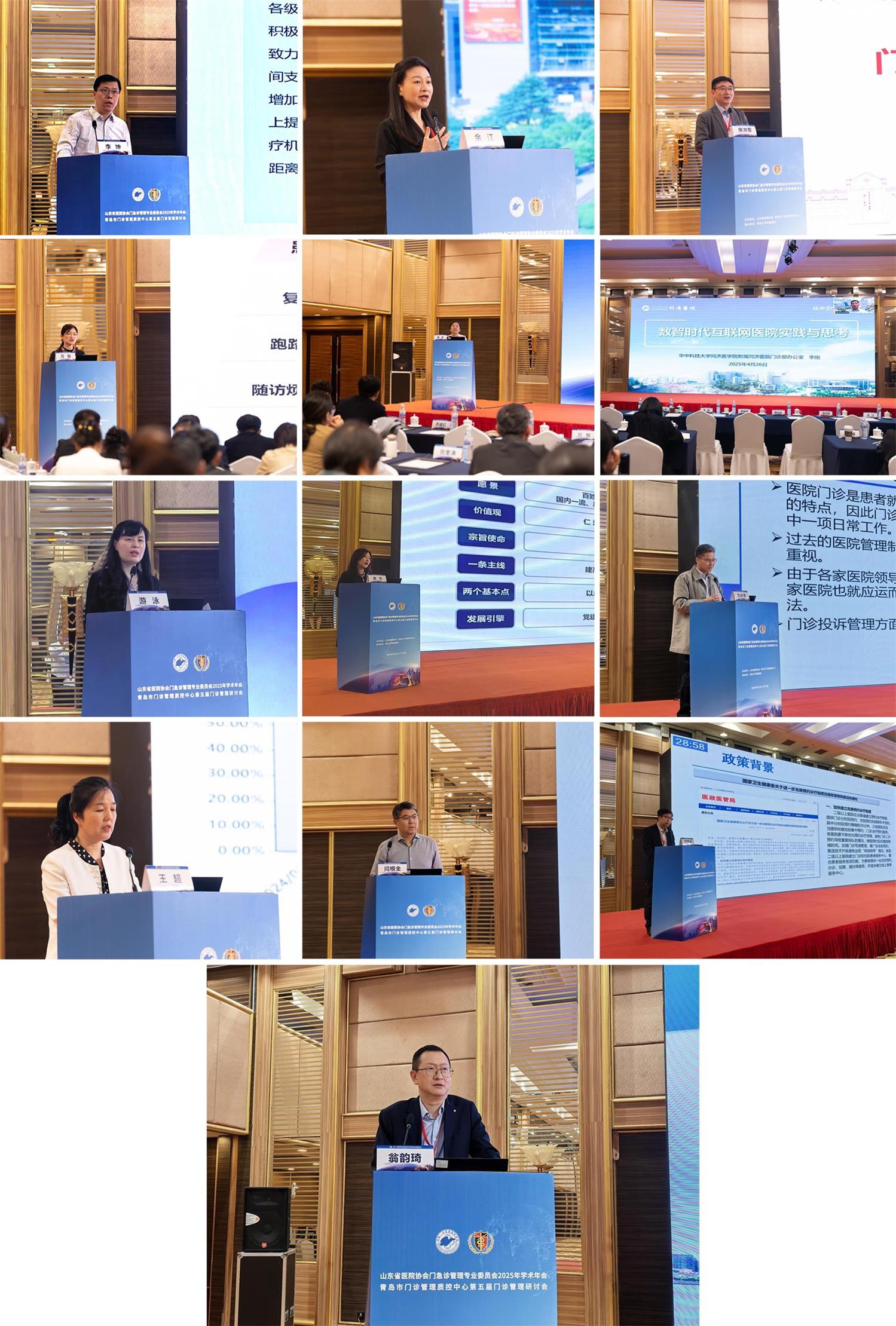学术交流期间,山东第一医科大学第一附属医院(山东省千佛山医院)党委委员,副院长李坤,陆军军医大学第二附属医院(重庆新桥医院)党委委员余江,北京大学第一医院门诊部主任房洪军,四川大学华西医院门诊部主任万智,首都医科大学附属北京友谊医院门诊部主任郭欣,华中科技大学同济医学院附属同济医院门诊部办公室主任李刚,郑州大学第一附属医院门诊部主任游泳,浙江省人民医院门诊部主任袁方,南通大学附属医院门诊部主任兼法务部主任仇永贵,山东大学齐鲁医院门诊部主任王超,山东第一医科大学附属省立医院(山东省立医院)门诊部主任兼医工办负责人闫根全,山东第一医科大学附属省立医院(山东省立医院)急救中心主任刘东兴,青岛大学附属医院门急诊部主任翁韵琦等13位讲课专家以智慧赋能、精细管理、协同发展为主题,聚焦门急诊质量管理、服务提升、流程优化、信息化管理等热点话题进行了授课,现场学术氛围浓厚,引发与会者热烈讨论。