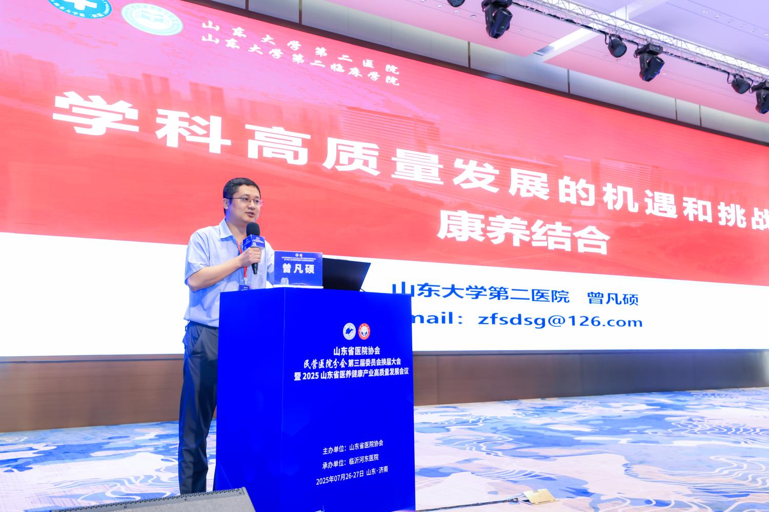 泉城盛夏,百脉汇流。7月26—27日,由山东省医院协会主办、临沂河东医院承办的“山东省医院协会民营医院分会第三届委员会换届大会暨2025年山东省医养健康产业高质量发展会议”在济南召开。来自山东省内的民营医疗机构负责人及骨干近200人参加会议。临沂河东医院院长王福德主持大会开幕式。