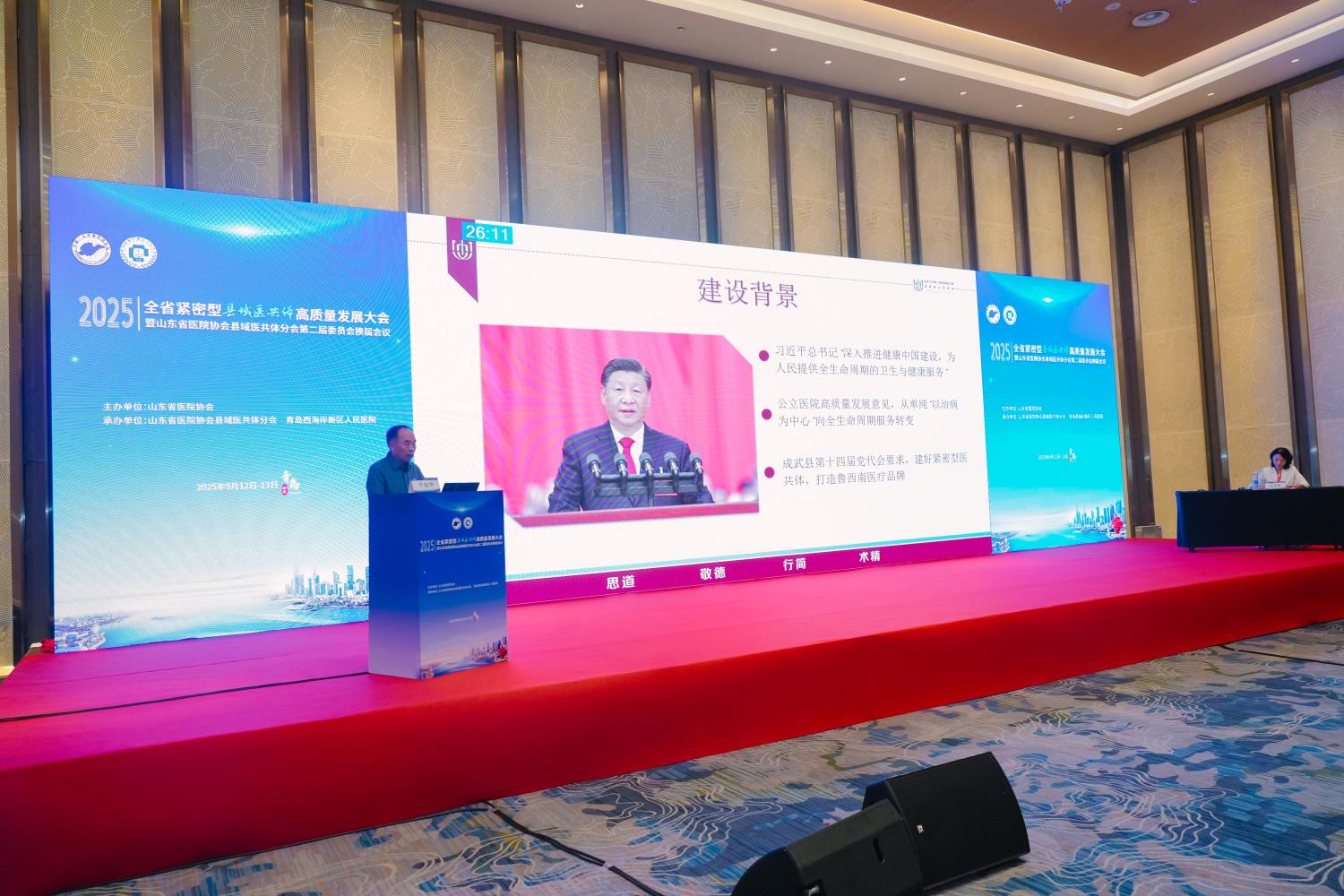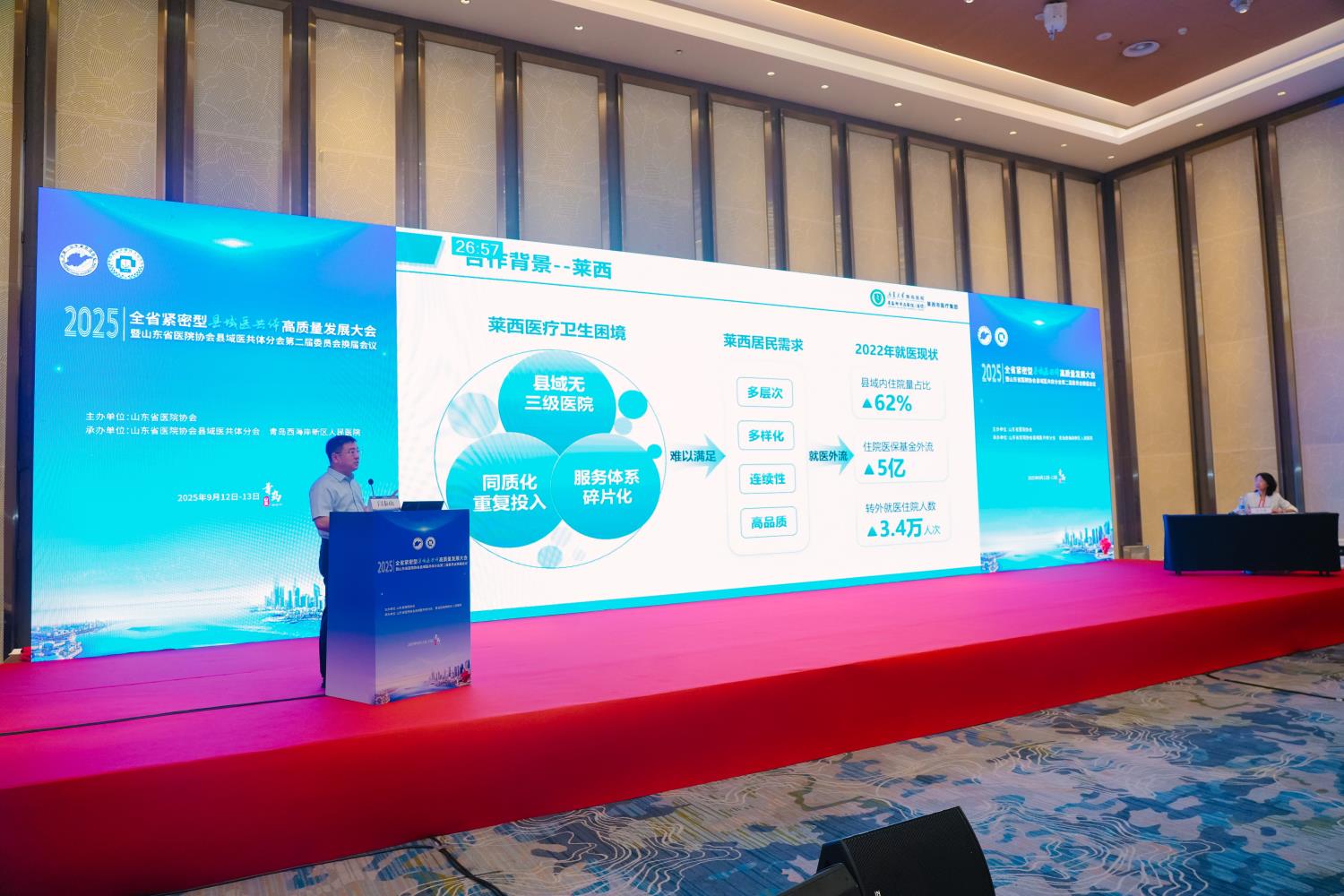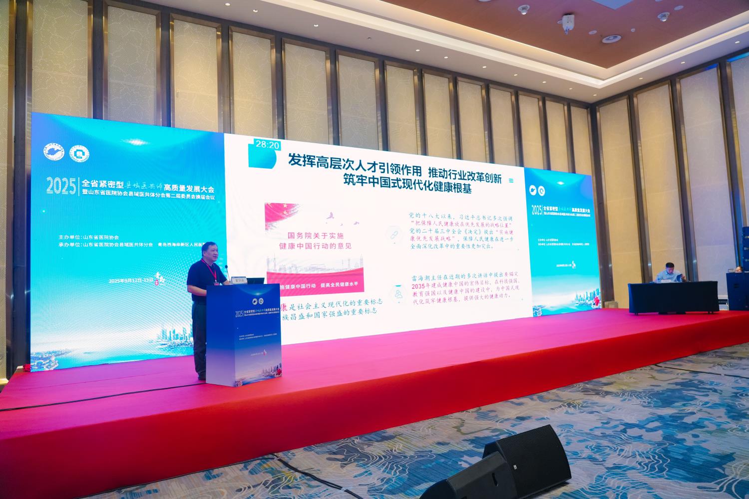 赵英民副区长首先对大会的顺利召开表示热烈祝贺,向远道而来的全省医疗领域领导、专家及同仁致以诚挚欢迎。他指出,青岛西海岸新区以建设紧密型县域医共体为主要抓手,致力于深化医药卫生体制改革,全面提升基层医疗服务能力。“医共体建设的核心是‘以人为本’,最终目标是让百姓在家门口享受到优质医疗服务。”他强调,本次大会在西海岸新区举办,既彰显了外界对新区医改探索的高度认可,也为新区搭建了汲取各方智慧、实现自我提升的优质平台。新区将以此次大会为契机,积极借鉴全省先进经验,进一步深化区域医疗协同、强化学科能力建设,推动紧密型医共体从“建起来”向“强起来”转变,为全省县域医疗健康事业发展贡献“西海岸力量”。
