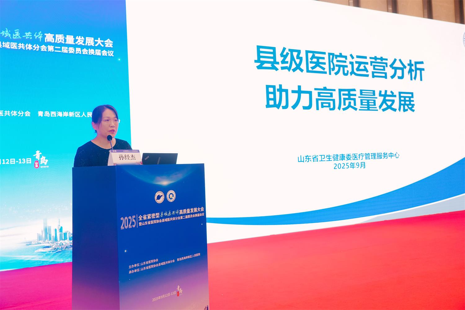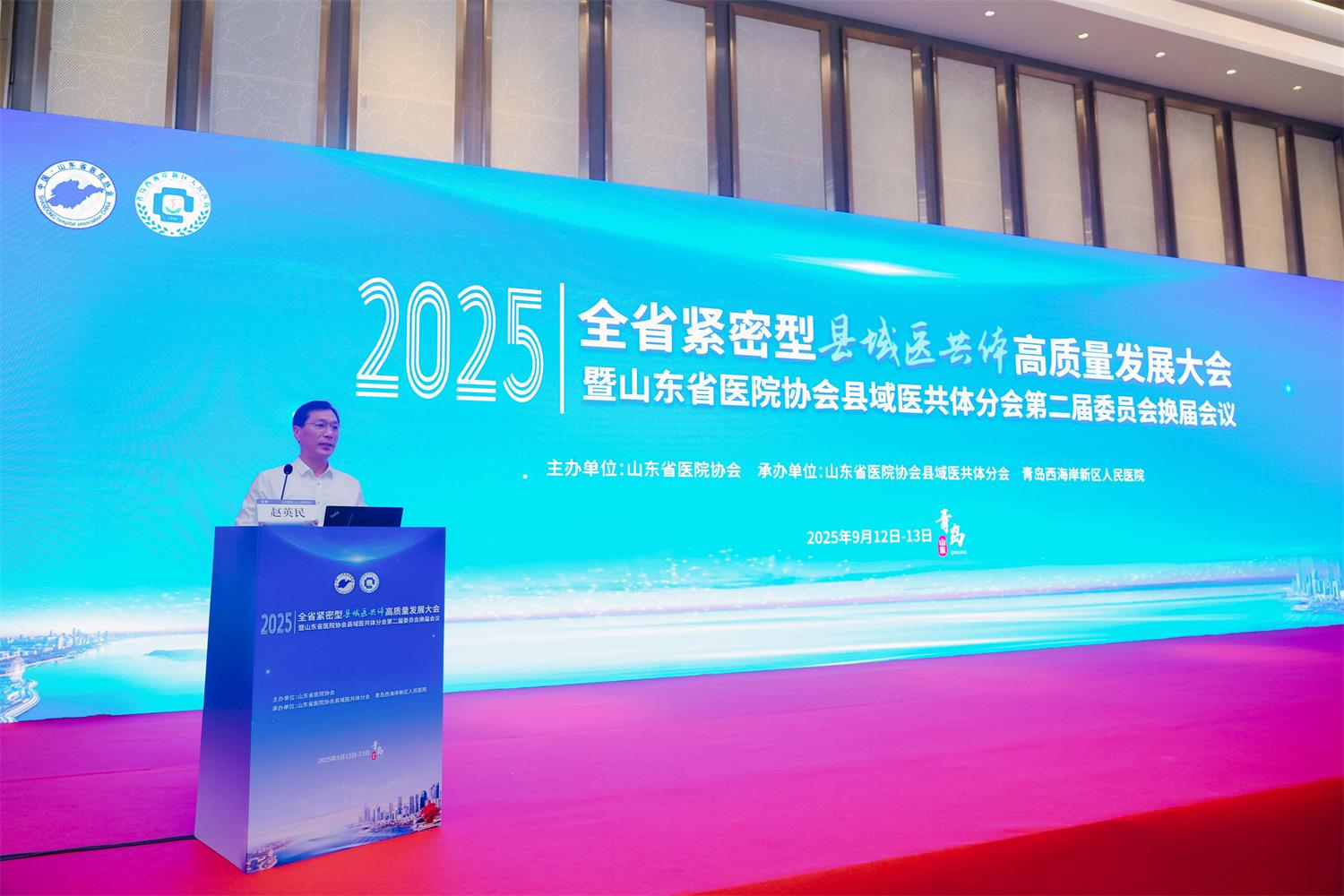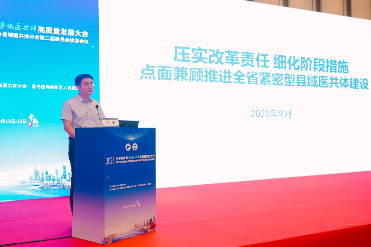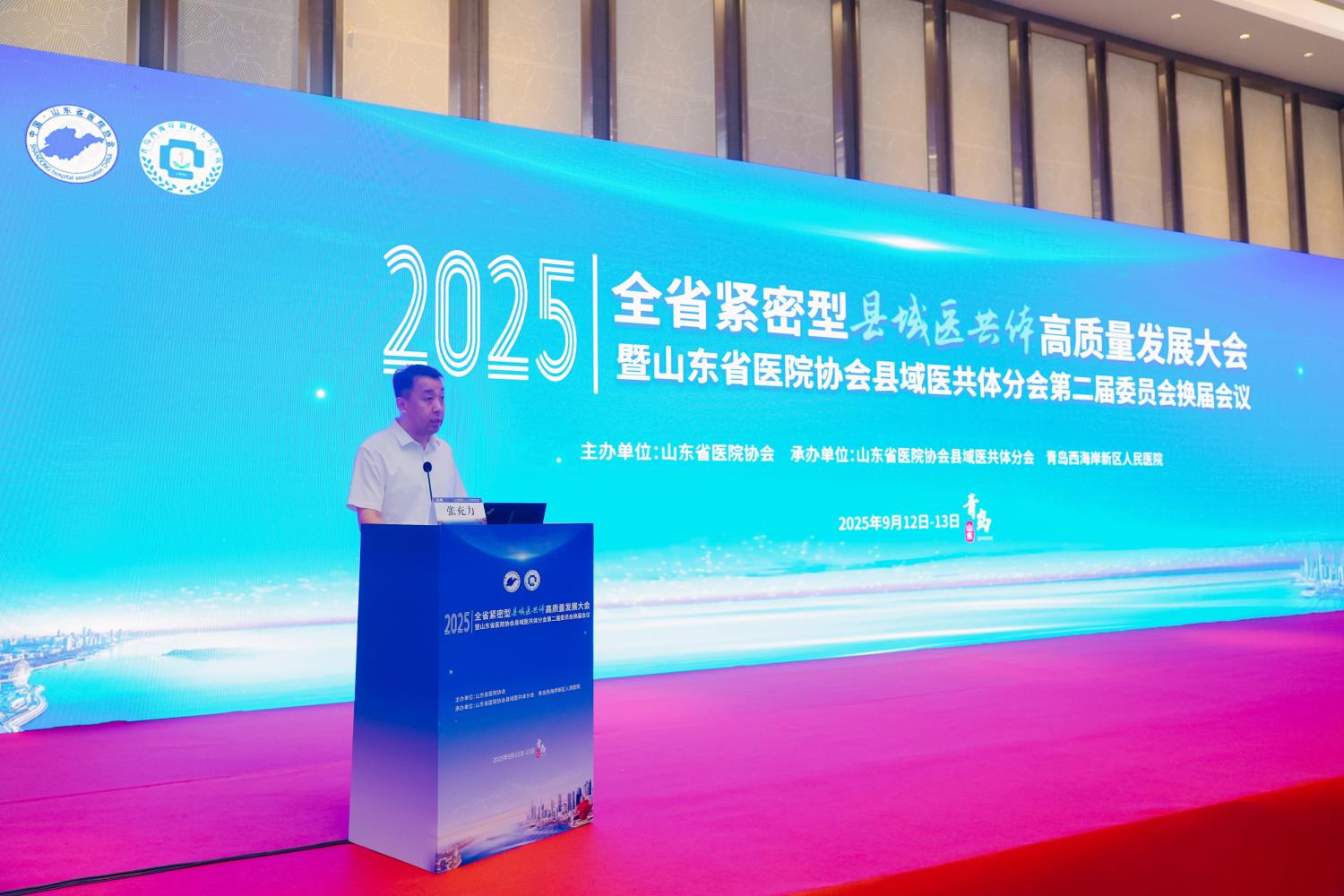为助推全省紧密型县域医共体高质量发展,加强县域医共体建设交流与合作,9月12-13日,由山东省医院协会主办,山东省医院协会县域医共体分会、青岛西海岸新区卫生健康局、青岛西海岸新区人民医院承办的2025全省紧密型县域医共体高质量发展大会暨山东省医院协会县域医共体分会第二届委员会换届会议在青岛西海岸新区顺利召开。国家卫生健康委人才交流服务中心原主任、研究员张学高,国家卫生健康委人才交流服务中心命题二室处长汪本奎,山东省卫生健康委原二级巡视员、山东省医院协会常务副会长刘桂刚,山东省卫生健康委基层卫生健康处二级主任科员张琳,山东省卫生健康委医管中心党委委员、副主任孙经杰,青岛市卫生健康委员会党组成员、副主任张充力,青岛市黄岛区政府党组成员、副区长赵英民,青岛西海岸新区卫生健康局党组书记、局长韩华,青岛西海岸新区人民医院党委书记、院长许学兵等出席开幕式。来自我省16个地市的各级卫生健康行政部门代表、县域医共体牵头医院及成员单位的主要负责人、相关科室业务骨干等齐聚一堂,共同为县域医共体的未来发展出谋划策。开幕式由青岛市黄岛区卫生健康局二级调研员周淳莉主持。