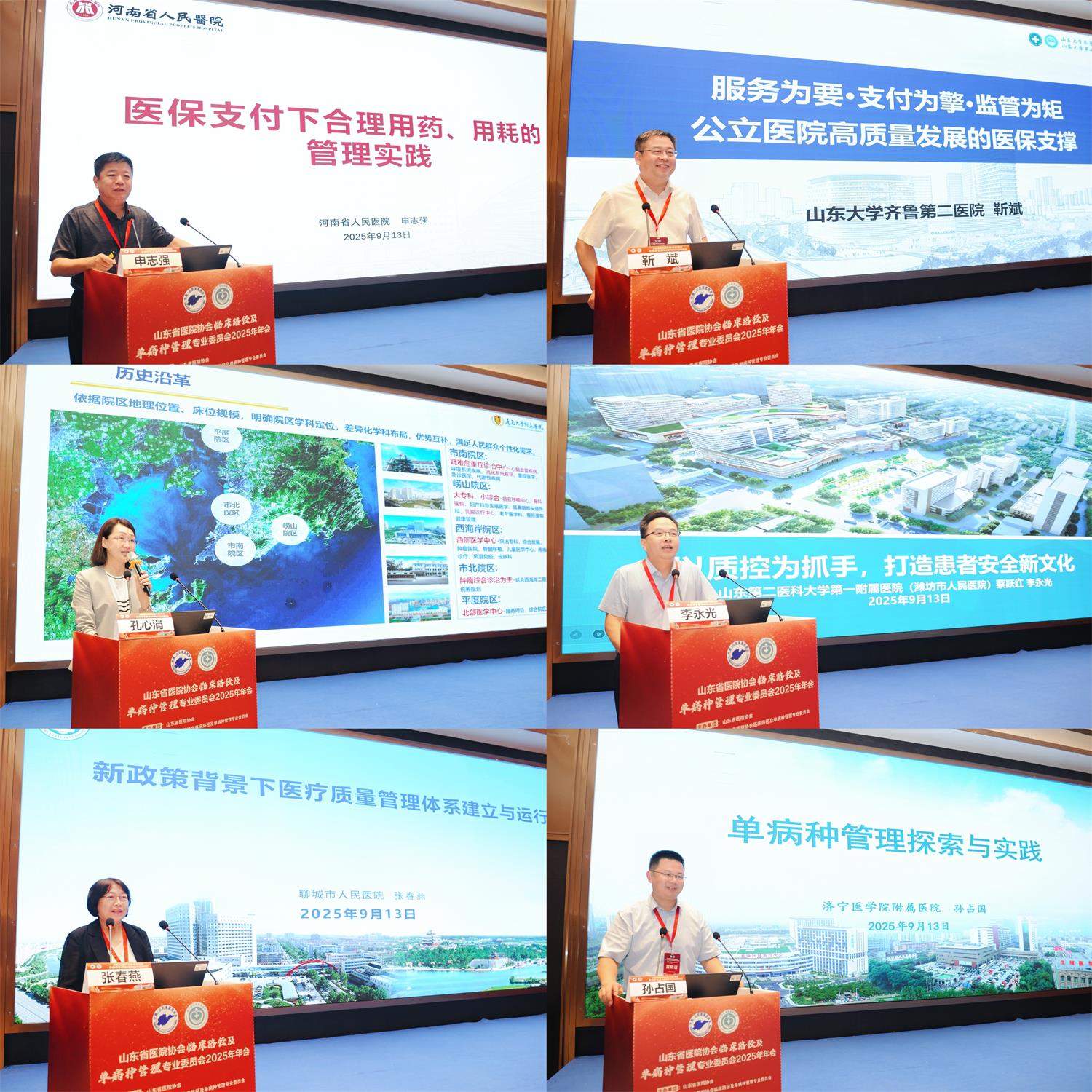 本次年会聚焦当前医院临床路径单病种管理中的热点话题,河南省人民医院副院长申志强、山东第二医科大学第一附属医院(潍坊市人民医院)质量管理办公室主任李永光、山东大学齐鲁第二医院副院长靳斌、青岛大学附属医院副院长孔心涓、聊城市人民医院主任张春燕、济宁医学院附属医院副院长孙占国分别围绕《医保支付下的合理用药、用耗的管理实践》、《以质控为抓手,打造患者安全新文化》、《公立医院高质量发展的医保支撑》、《高质量发展背景下的专病中心建设的实践》、《新政策背景下的医疗质量管理体系的建立与运行》、《单病种管理探索与实践》等课题内容,带来了精彩的分享。