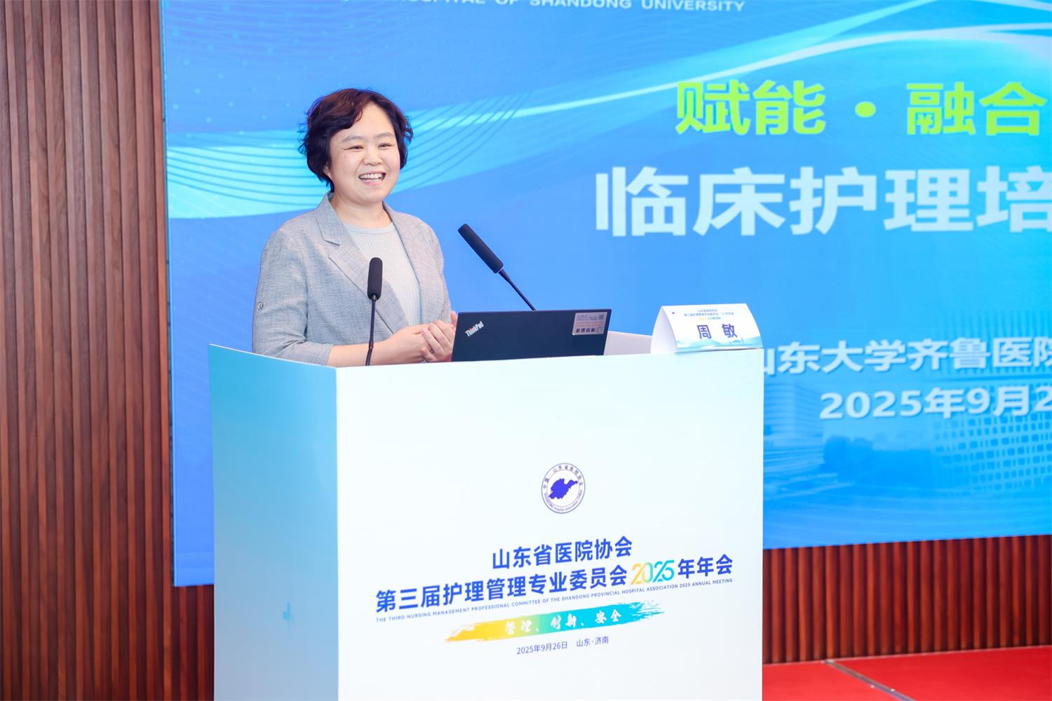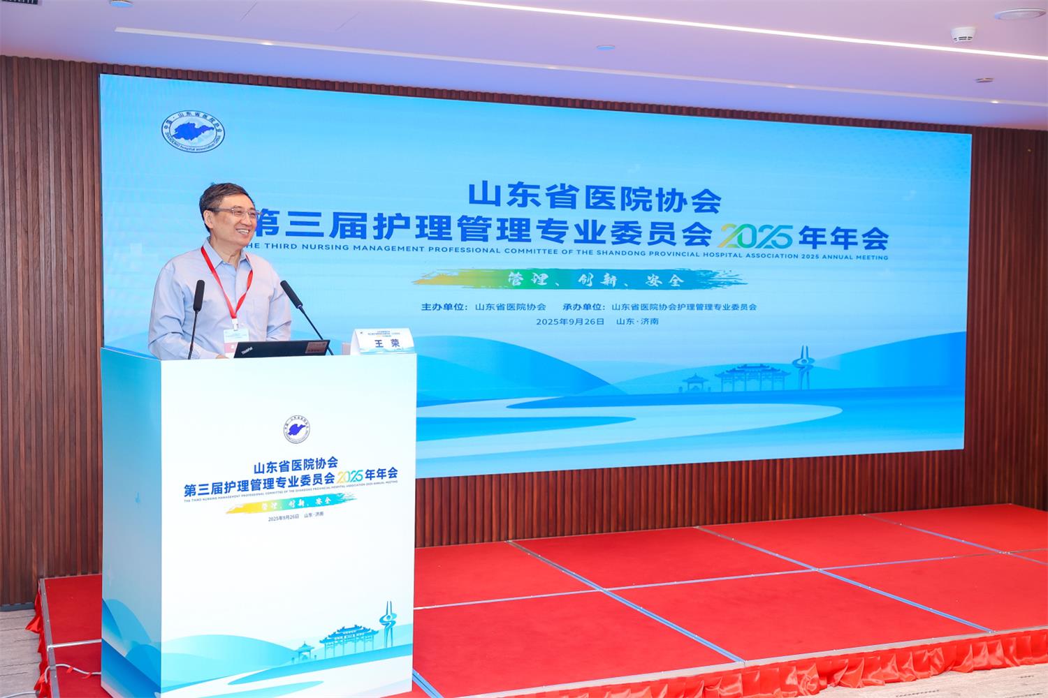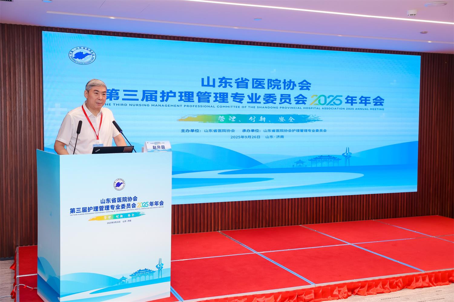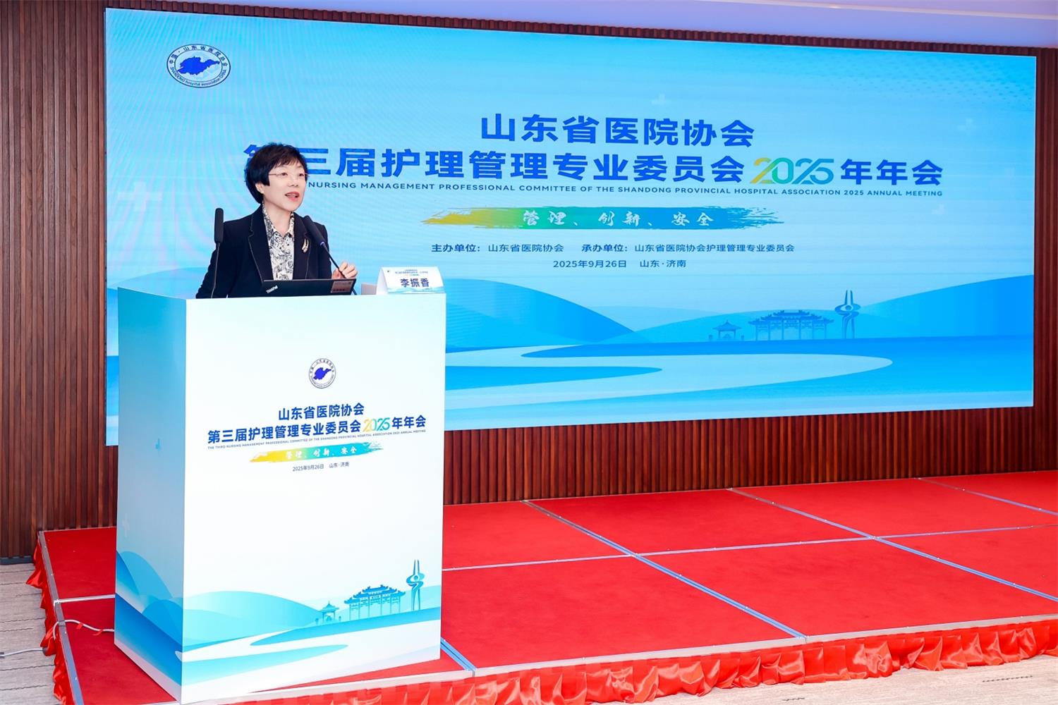 2025年9月26日,由山东省医院协会主办、山东省医院协会护理管理专业委员会承办的“第三届护理管理专业委员会2025年年会”在山东济南成功举办。本次年会以“管理·创新·安全”为主题,吸引了来自省内外护理领域的众多专家齐聚一堂。山东省医院协会会长赵升田、山东省医院协会副会长、第三届护理管理专委会名誉主任委员王荣教授、浙江大学医学院附属邵逸夫医院护理部副主任潘红英、中国科学技术大学附属第一医院(安徽省立医院)教育处处长宋瑰琦等出席开幕式。开幕式由山东省医院协会护理管理专业委员会主任委员李振香主持。