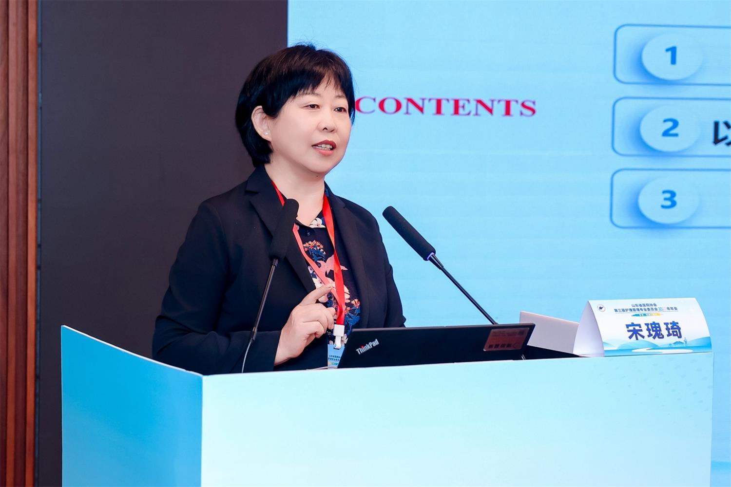 山东大学齐鲁第二医院护理部主任王晓云以“守正创新·中西并重”为主题,介绍了综合医院中西医协同护理服务体系的构建。她从破局之道、创新实践、深化应用、多维成效等方面展开阐述,为综合医院中西医协同发展提供了经验借鉴,有助于提高中医药服务能力与患者满意度。