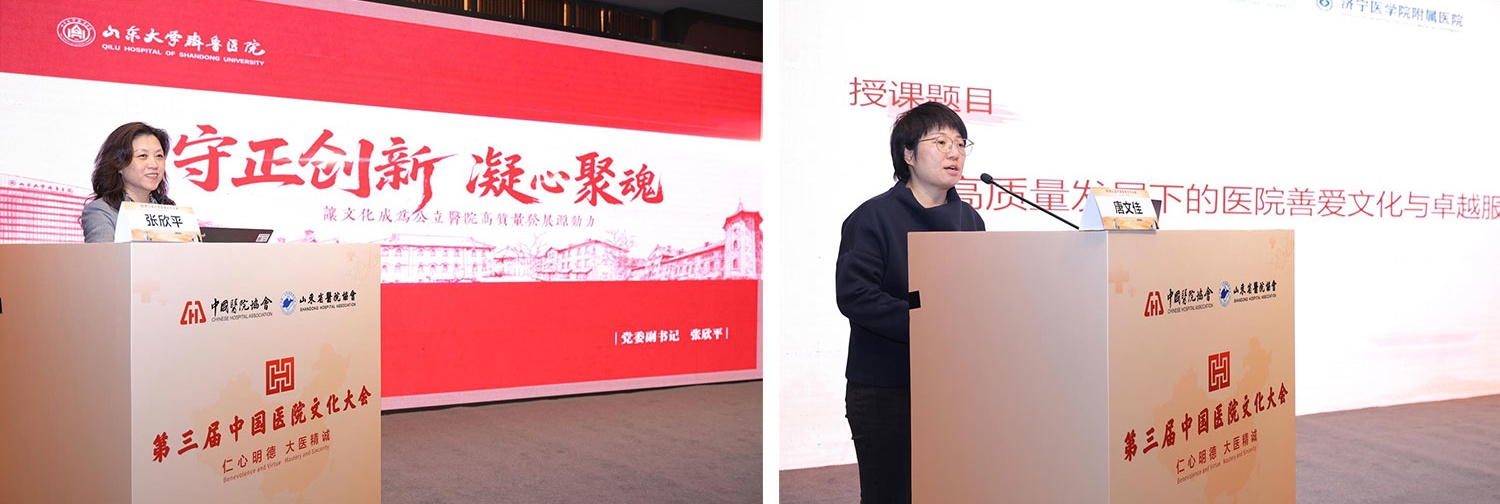 在学术报告环节,张欣平副书记作了题为“文化助力医院高质量发展的齐鲁实践”的专题报告,深入剖析了齐鲁医院如何通过文化建设推动医院在医疗技术、服务质量、人才培养等方面实现高质量发展,为健康传播提供了坚实的文化支撑;北京市卫生健康委宣传思想文化负责人分享了“立足首都大局,构建健康传播立体化特色体系”的报告,介绍了北京市在健康传播领域的创新举措和实践经验,为山东省健康传播工作提供了有益的借鉴;上海交通大学医学院附属瑞金医院精神文明办公室兼社会工作部主任唐文佳带来了“高质量发展下的医院善爱文化与卓越服务”的报告,阐述了善爱文化在医院服务中的重要作用,以及如何通过卓越服务提升患者的就医体验,为健康传播注入人文关怀的理念。
