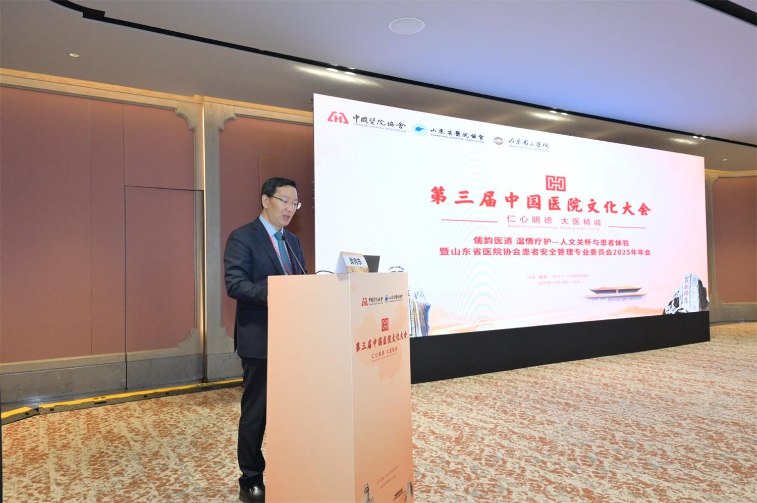 10月25日,山东省医院协会患者安全管理专业委员会2025年年会在曲阜顺利召开。大会作为中国医院协会与山东省医院协会共同主办的中国医院文化大会——平行会议三“人文关怀与患者体验”同步举行。山东第一医科大学(山东省医学科学院)党委副书记、省立医院党委书记吴向东、山东省医院协会会长赵升田参加开幕式并致辞,山东省立医院党委副书记王默主持开幕式。