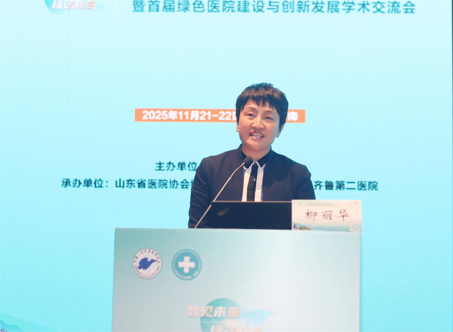 山东大学齐鲁第二医院党委书记柳丽华在致辞中对与会嘉宾的到来表示欢迎,强调绿色医院建设是高质量发展的必由之路。她指出,面对“健康中国2030”与“双碳”目标,医院应重点围绕节能降耗、环境友好与智慧运维三大方向系统推进。她期望本次会议成为凝聚智慧、共享经验的平台,助力绿色医院创新发展,并预祝大会圆满成功。