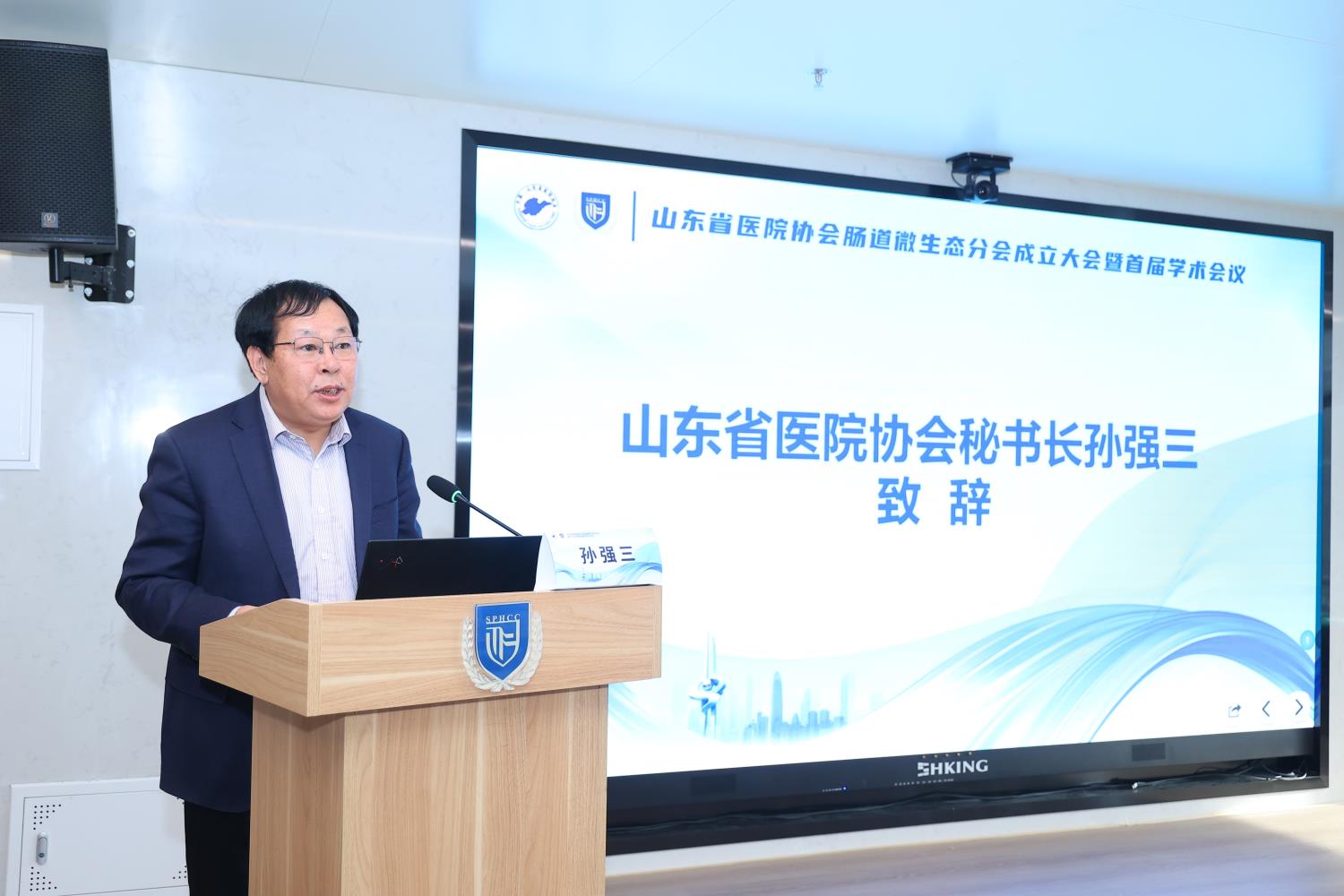 山东省医院协会秘书长孙强三对肠道微生态分会的成立表示祝贺。他在致辞中指出,肠道微生态分会的成立,进一步完善了协会的学科布局,将有效整合全省优势资源,建立多学科协作机制,推动肠道微生态基础研究与临床实践深度融合,助力提升我省在该领域的核心竞争力。他希望分会能不负重托,团结协作,锐意进取,推动我省肠道微生态事业迈上新台阶,为建设“健康山东”、“健康中国”作出应有贡献。