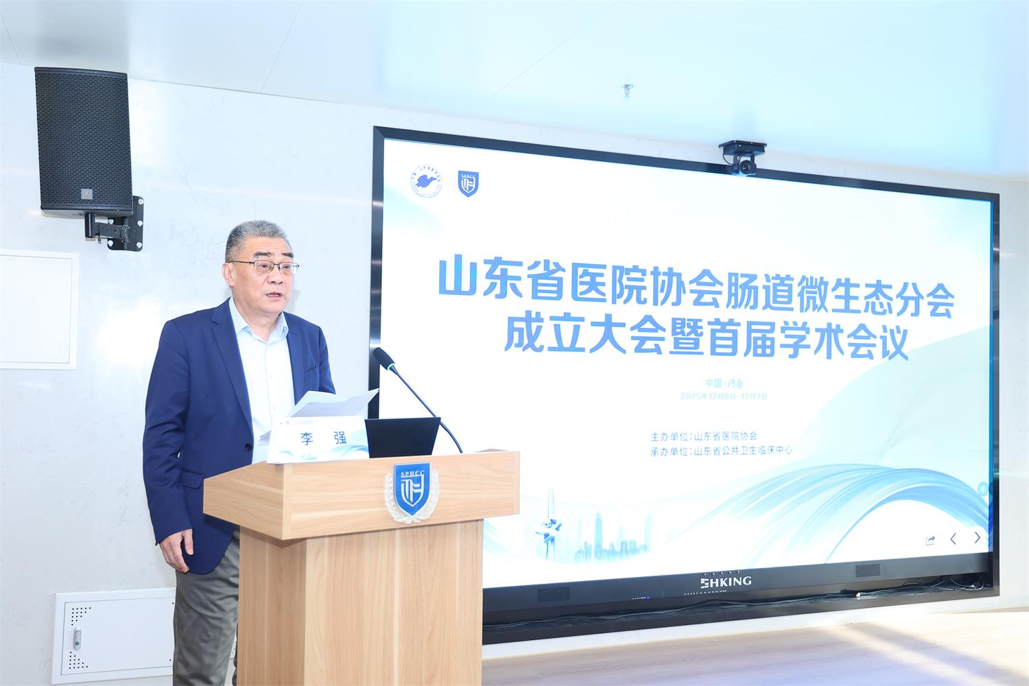 2025年12月7日,由山东省医院协会主办、山东省公共卫生临床中心承办的山东省医院协会肠道微生态分会成立大会暨首届学术会议在山东省公共卫生临床中心科研楼会议室顺利召开。大会汇聚领域内专家学者以及肠道微生态相关临床医务工作者,以搭建协作平台、推动学科发展为核心,有序开展组织建设、学术交流等重点工作,为区域肠道微生态领域高质量发展奠定坚实基础。开幕式由山东省公共卫生临床中心副处级领导干部、肠道微生态中心李强主任主持。