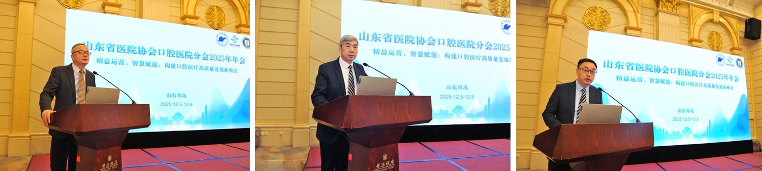 吕富杰在致辞中表示,口腔健康关乎民生幸福指数,是“健康中国”大厦的重要基石,青岛市卫生健康委将一如既往地支持包括口腔医院在内的各级各类公立医院,在国家与省级政策的指引下,大胆探索符合自身实际的高质量发展之路。我们将努力营造有利于创新发展的政策环境,支持医院在依法合规的前提下开展数智化探索,并积极总结推广成熟经验。侯凤春在欢迎辞中对大家的到来表示热烈欢迎,他指出我们从事的口腔健康事业,既是对“仁心仁术”“修身齐家”传统文化理念的当代践行,又是肩负提升民众健康福祉、助力“健康中国”建设的时代使命。期待能与在座的各位专家、各位同仁深入探讨,分享智慧,共同为推动我省乃至全国口腔医疗事业的高质量发展贡献新的、更大的力量!
