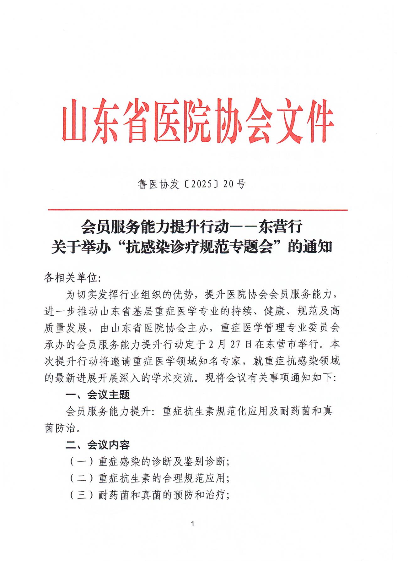 会员服务能力提升行动——东营行关于举办“抗感染诊疗规范专题会”的通知