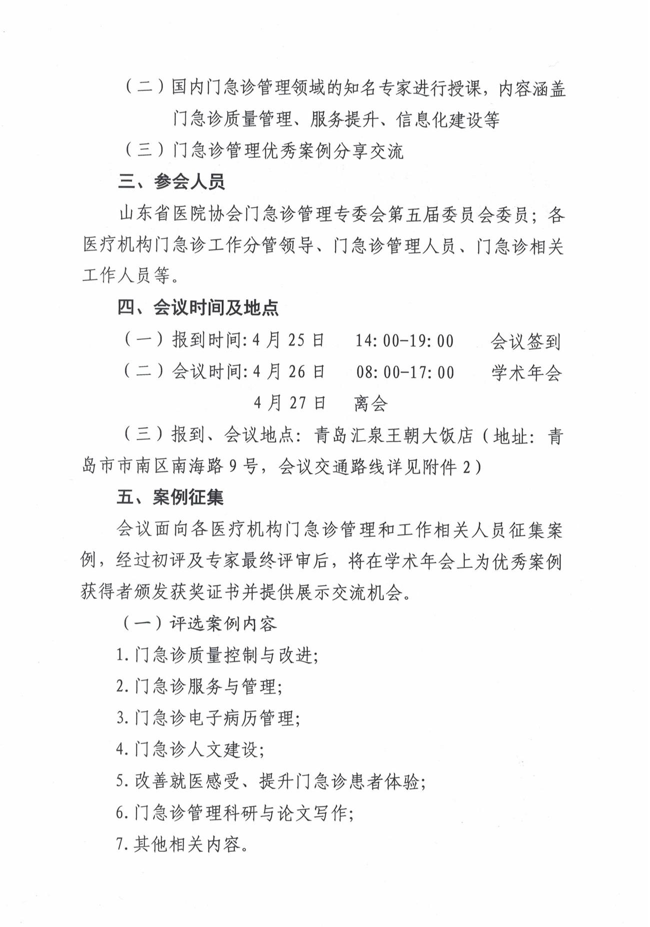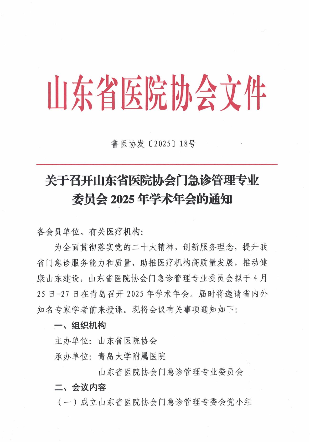 关于召开山东省医院协会门急诊管理专业委员会2025年学术年会的通知