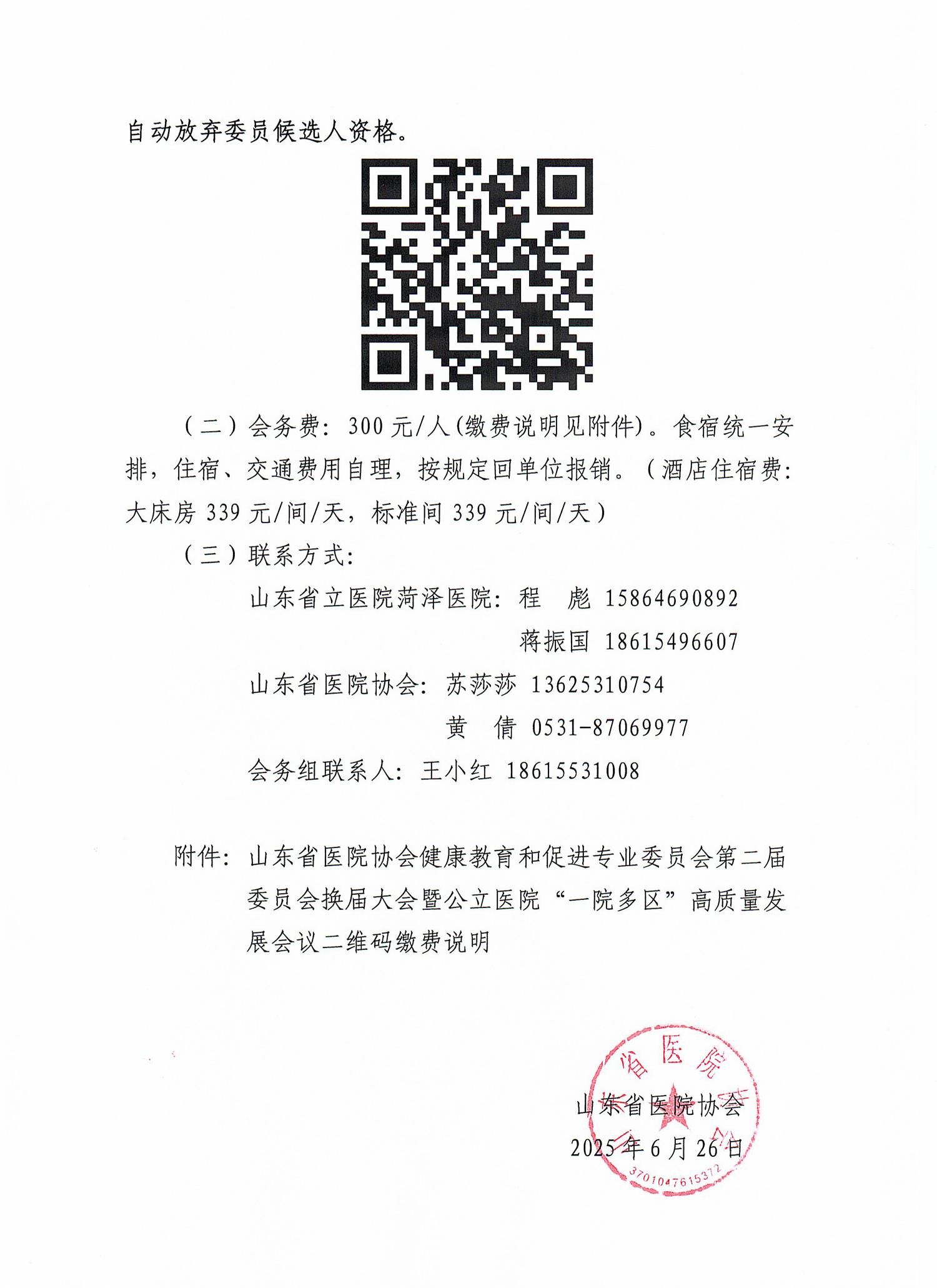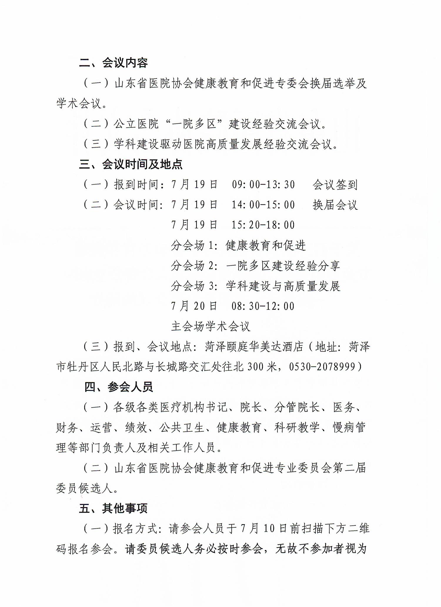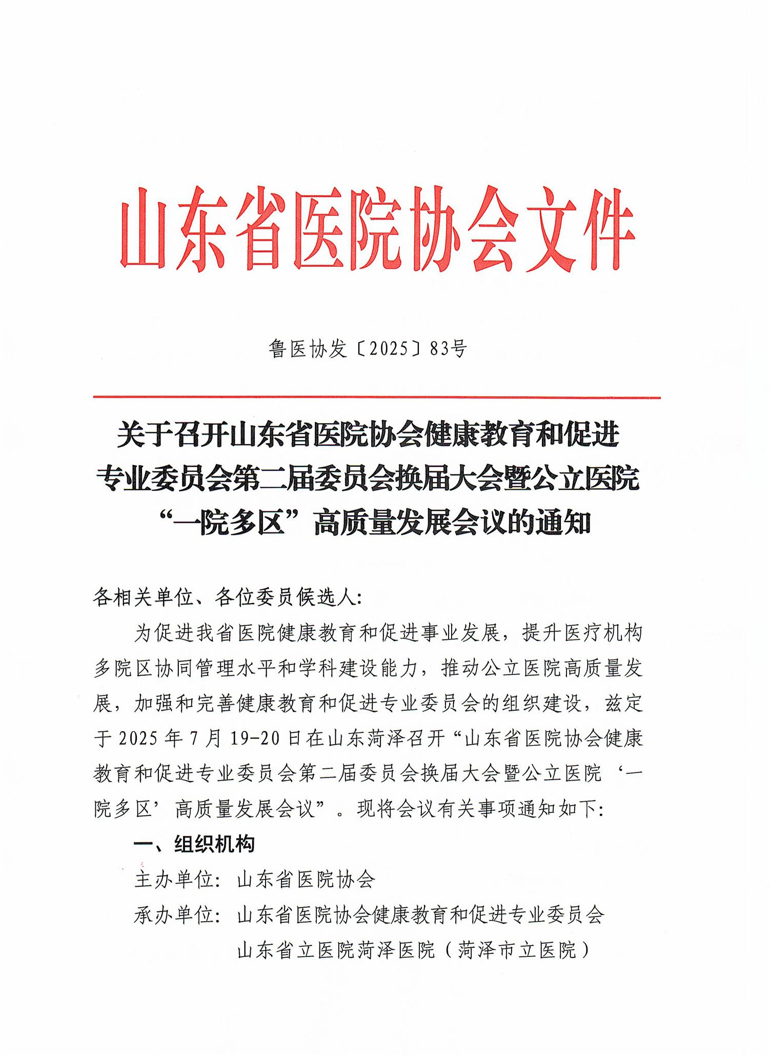 关于召开山东省医院协会健康教育和促进专业委员会第二届委员会换届大会暨公立医院“一院多区”高质量发展会议的通知