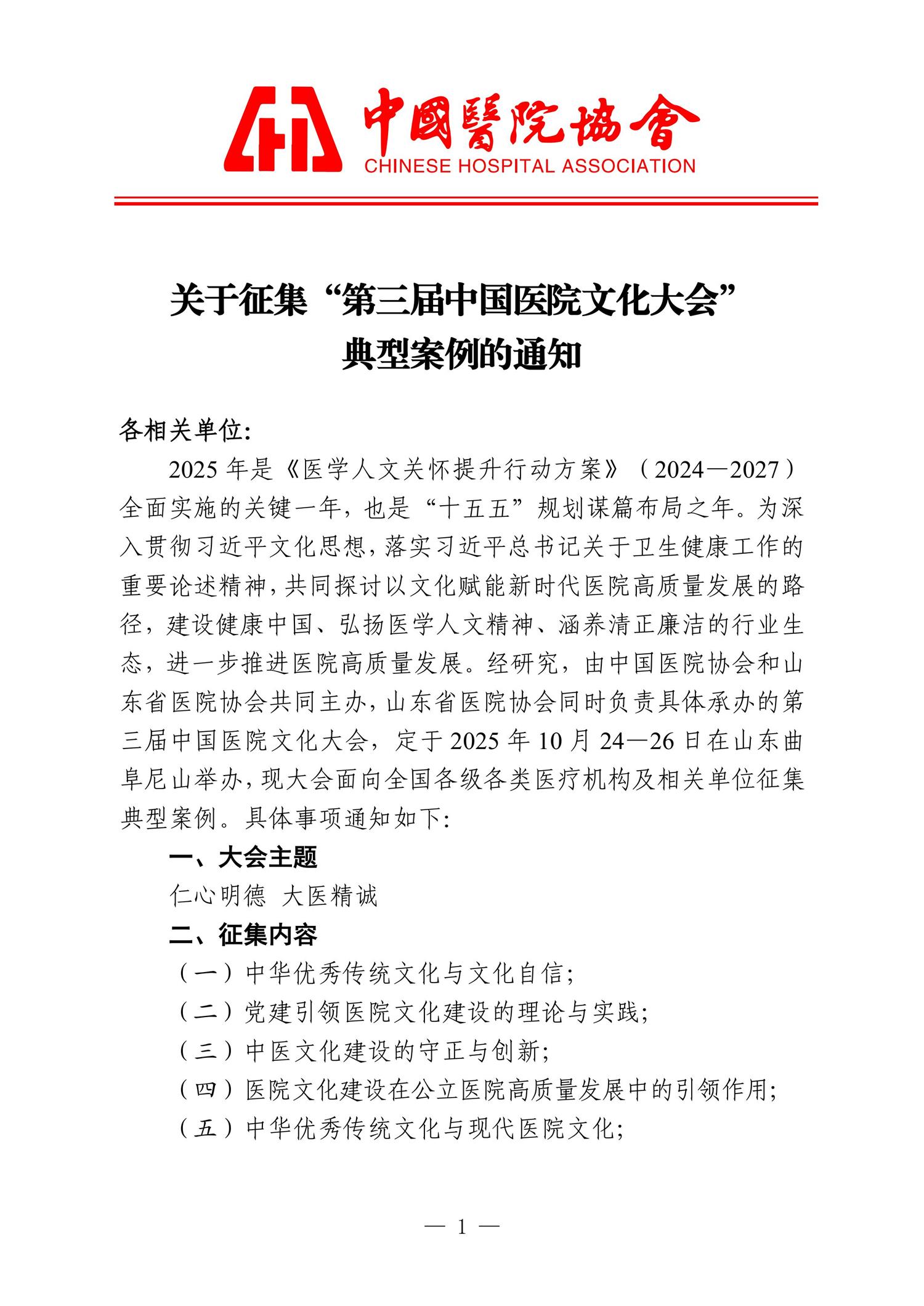 关于征集“第三届中国医院文化大会”典型案例的通知