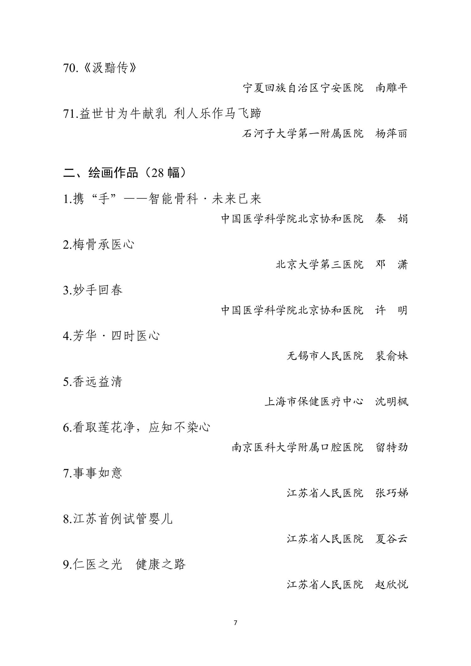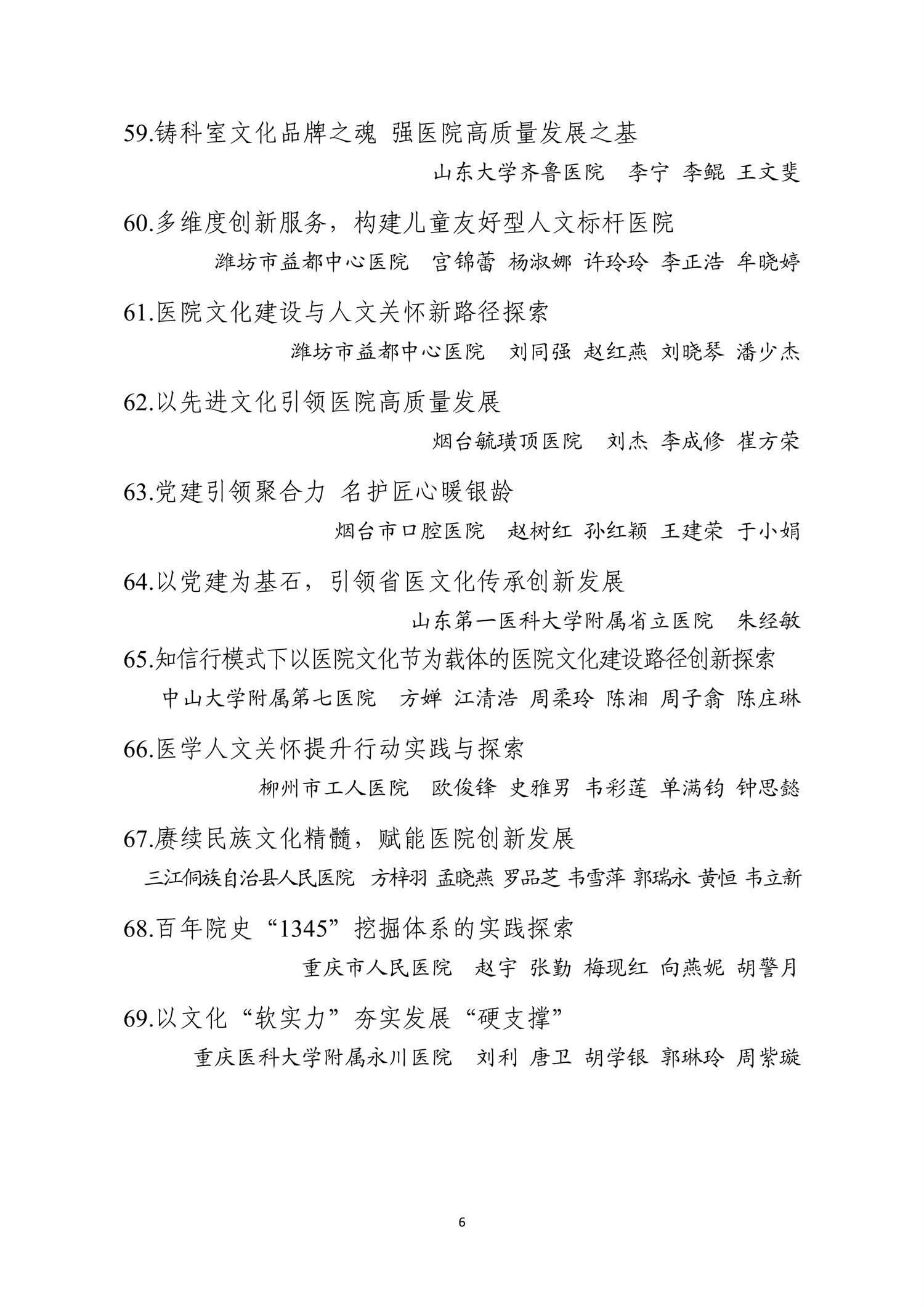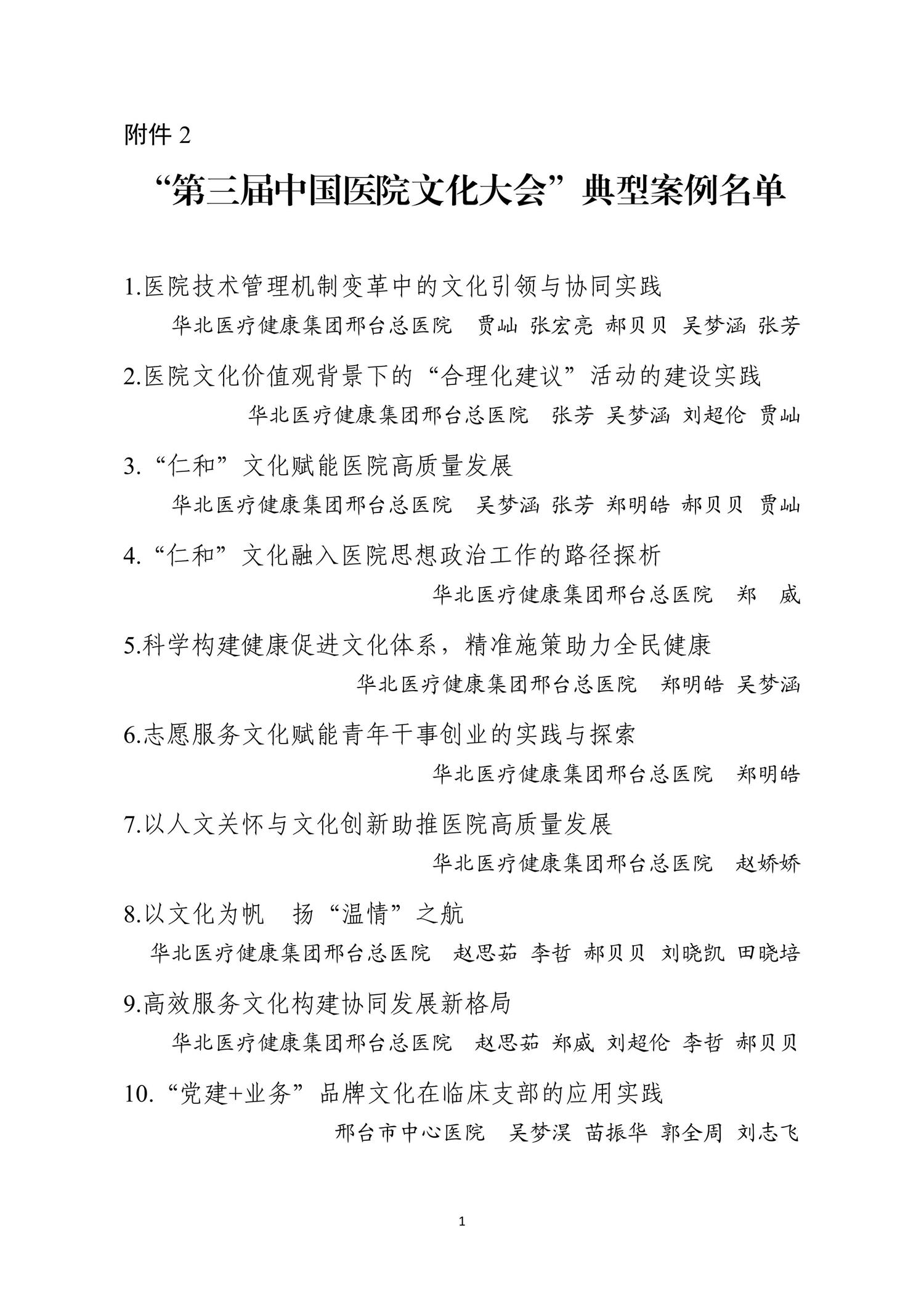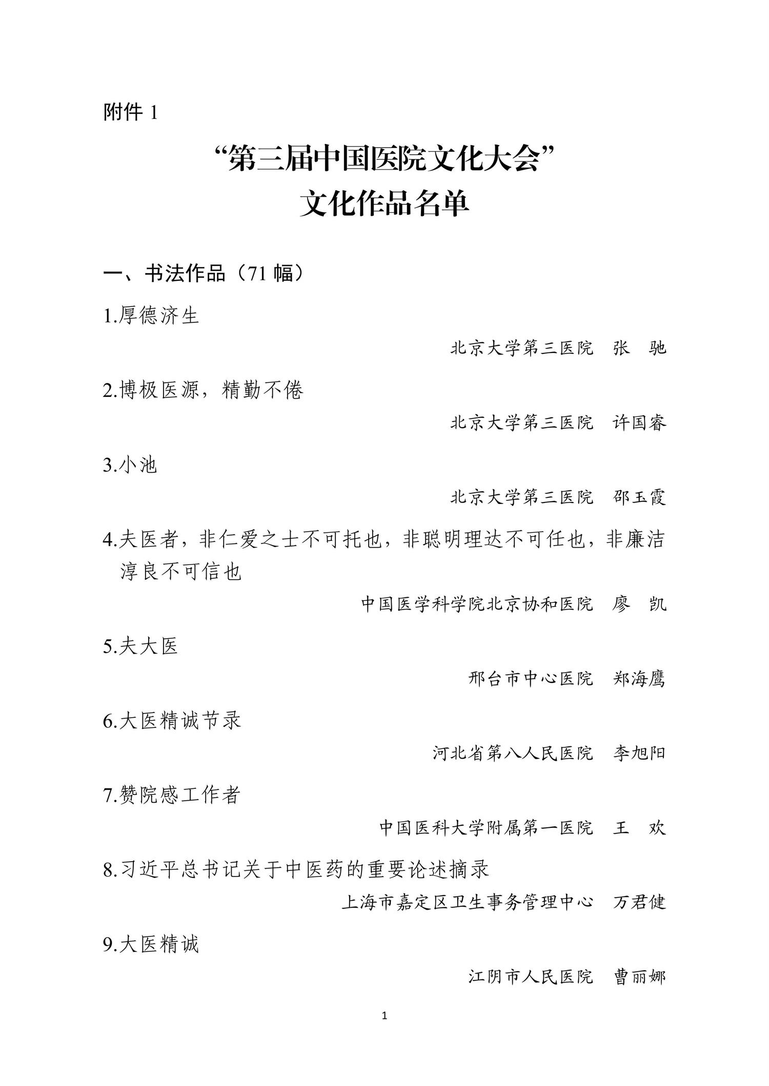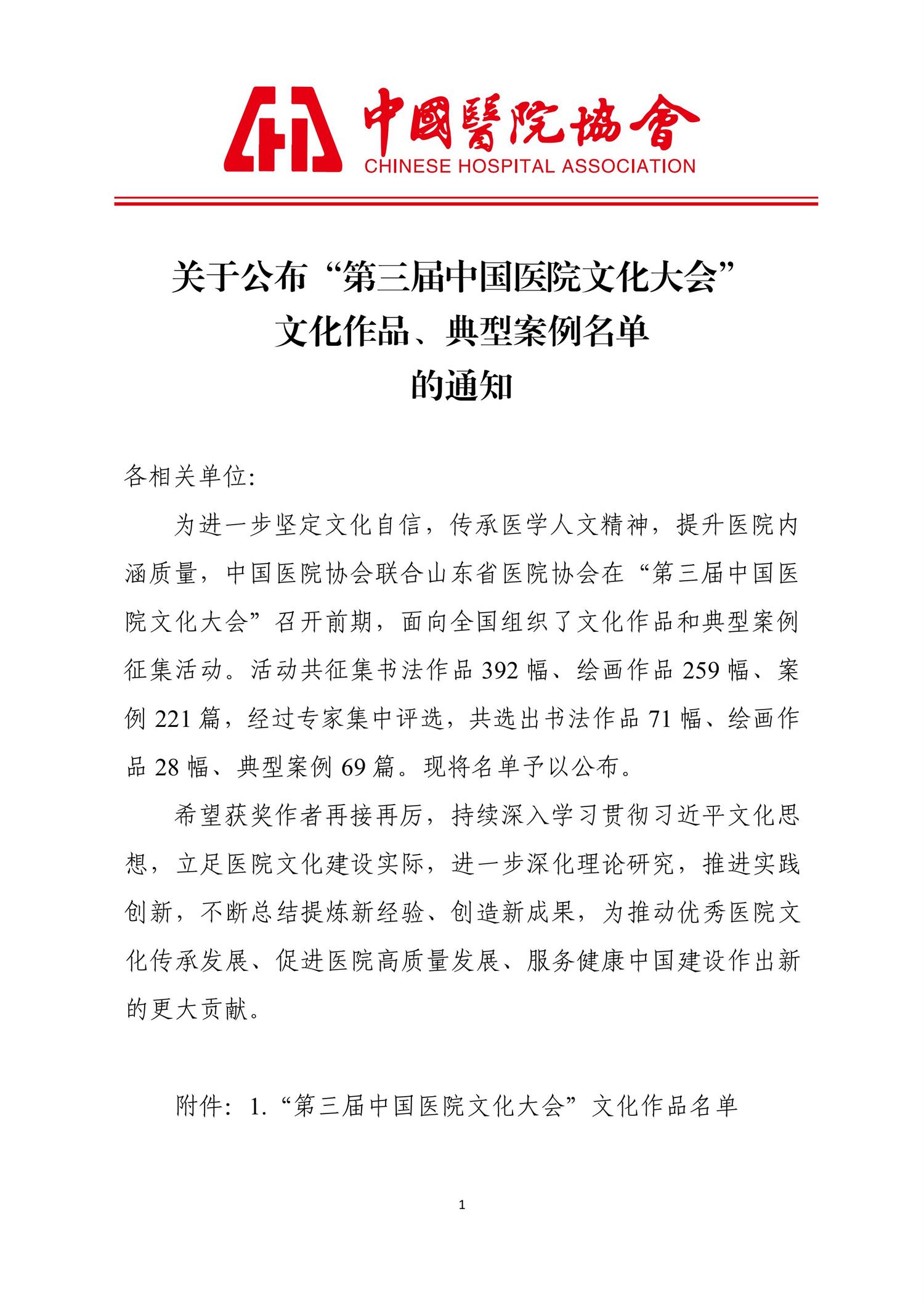 关于公布“第三届中国医院文化大会文化作品、典型案例名单的通知