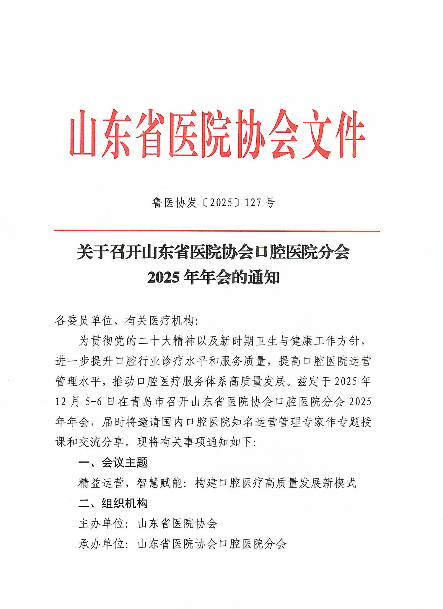 关于召开山东省医院协会口腔医院分会2025年年会的通知