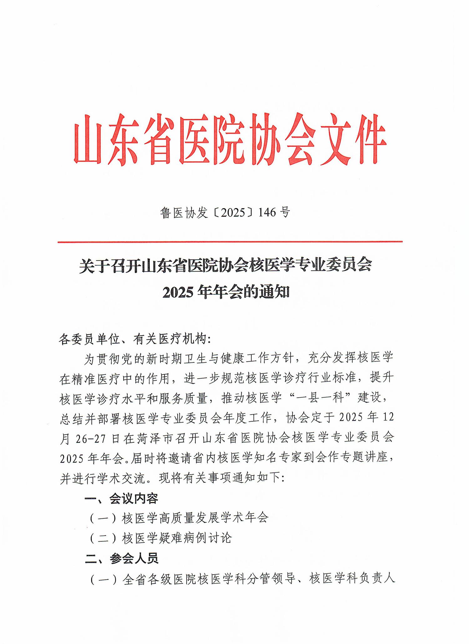 关于召开山东省医院协会核医学专业委员会2025年年会的通知