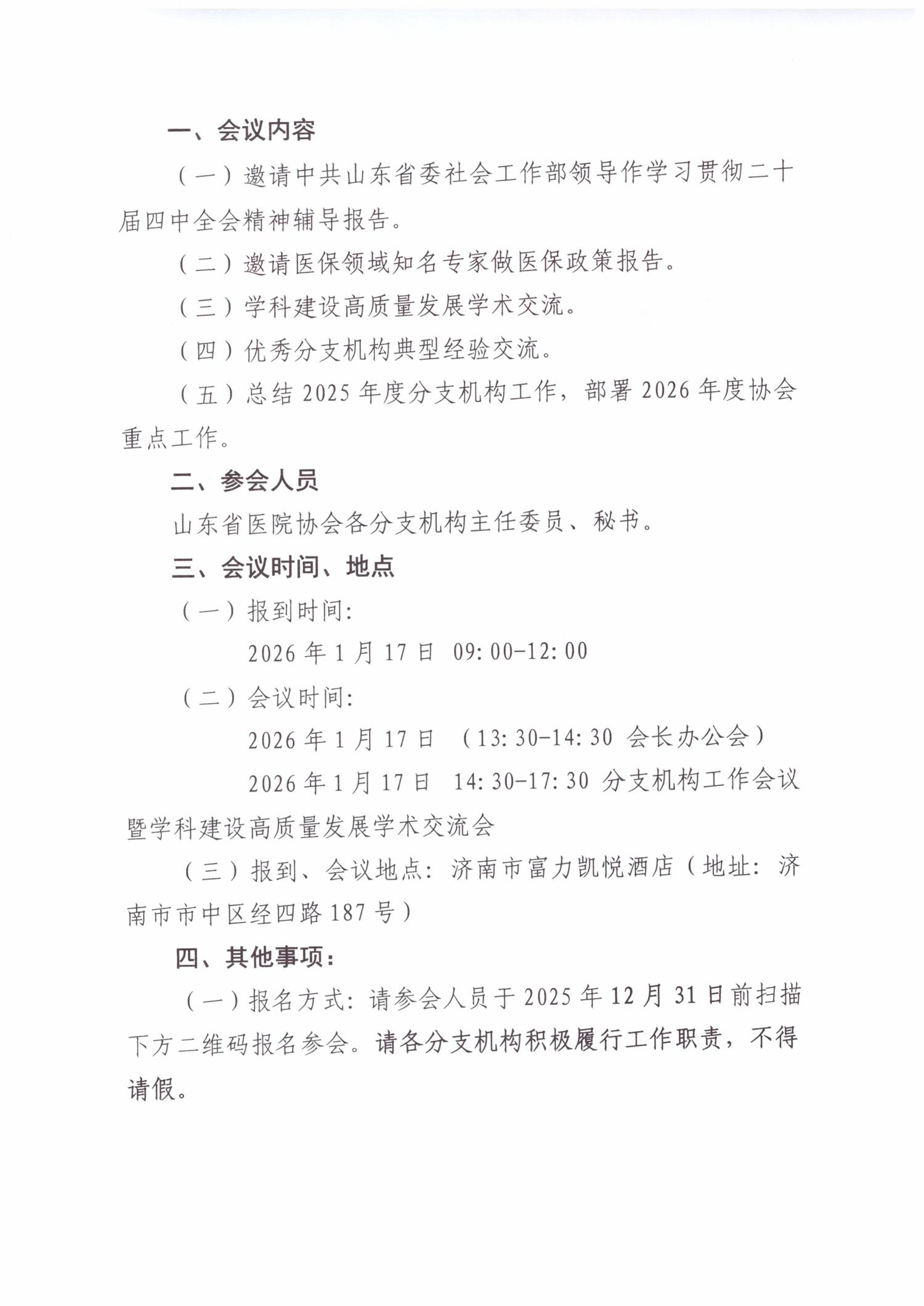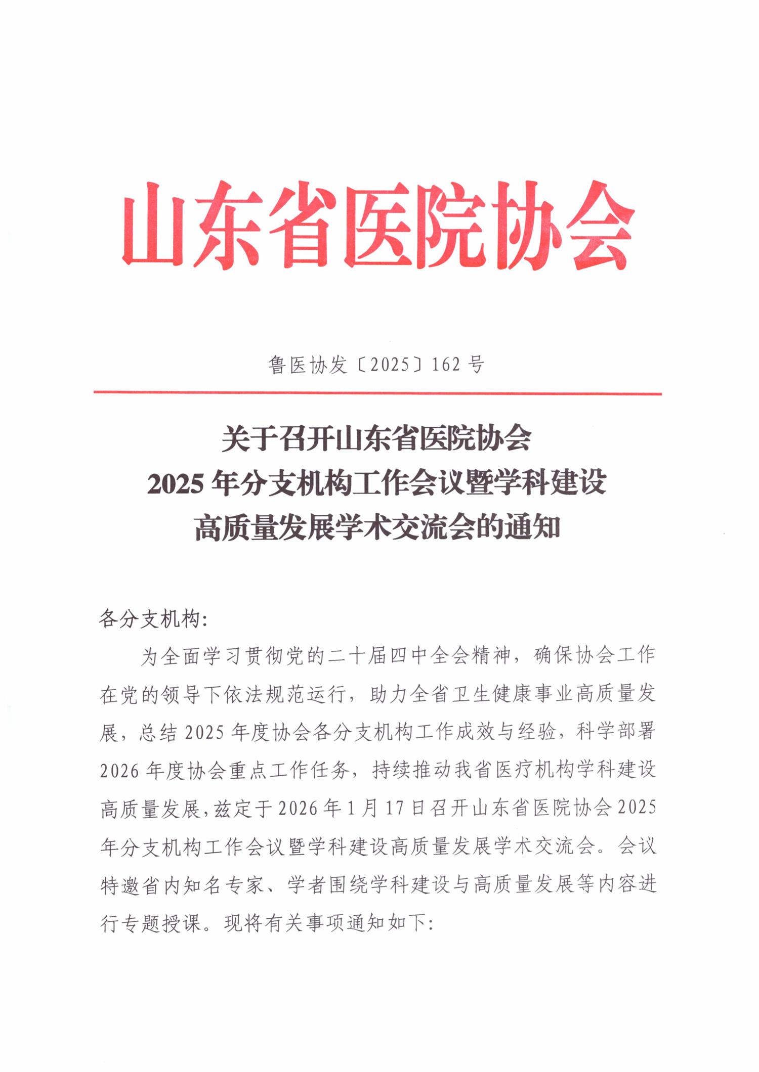 关于召开山东省医院协会2025年分支机构工作会议暨学科建设高质量发展学术交流会的通知