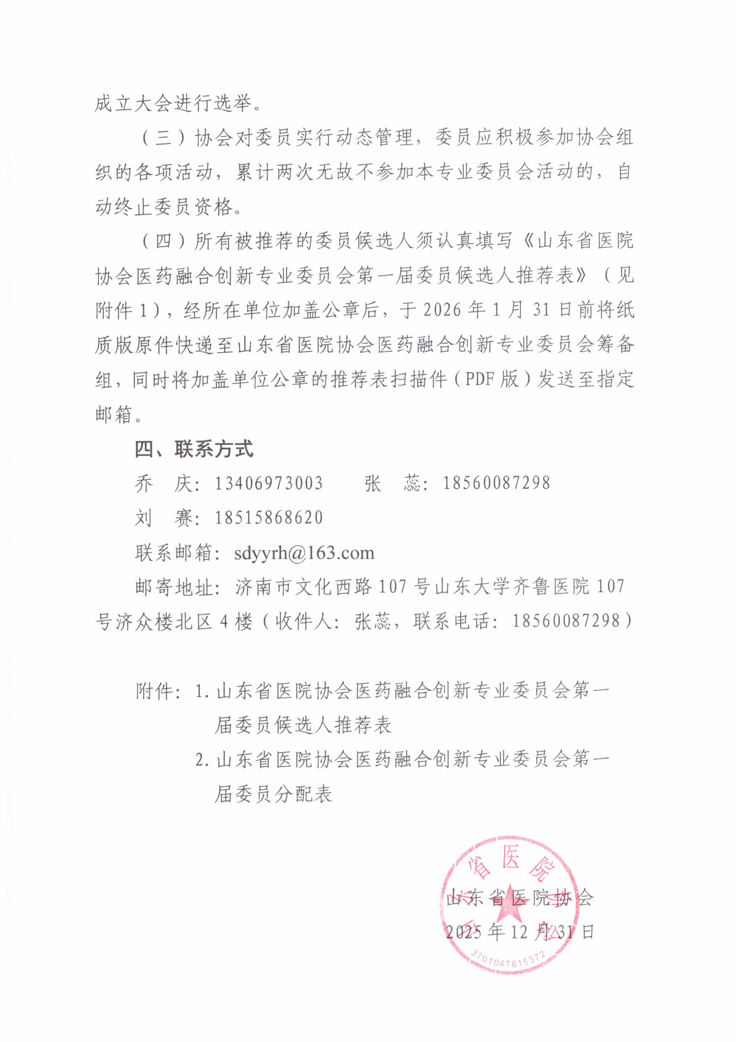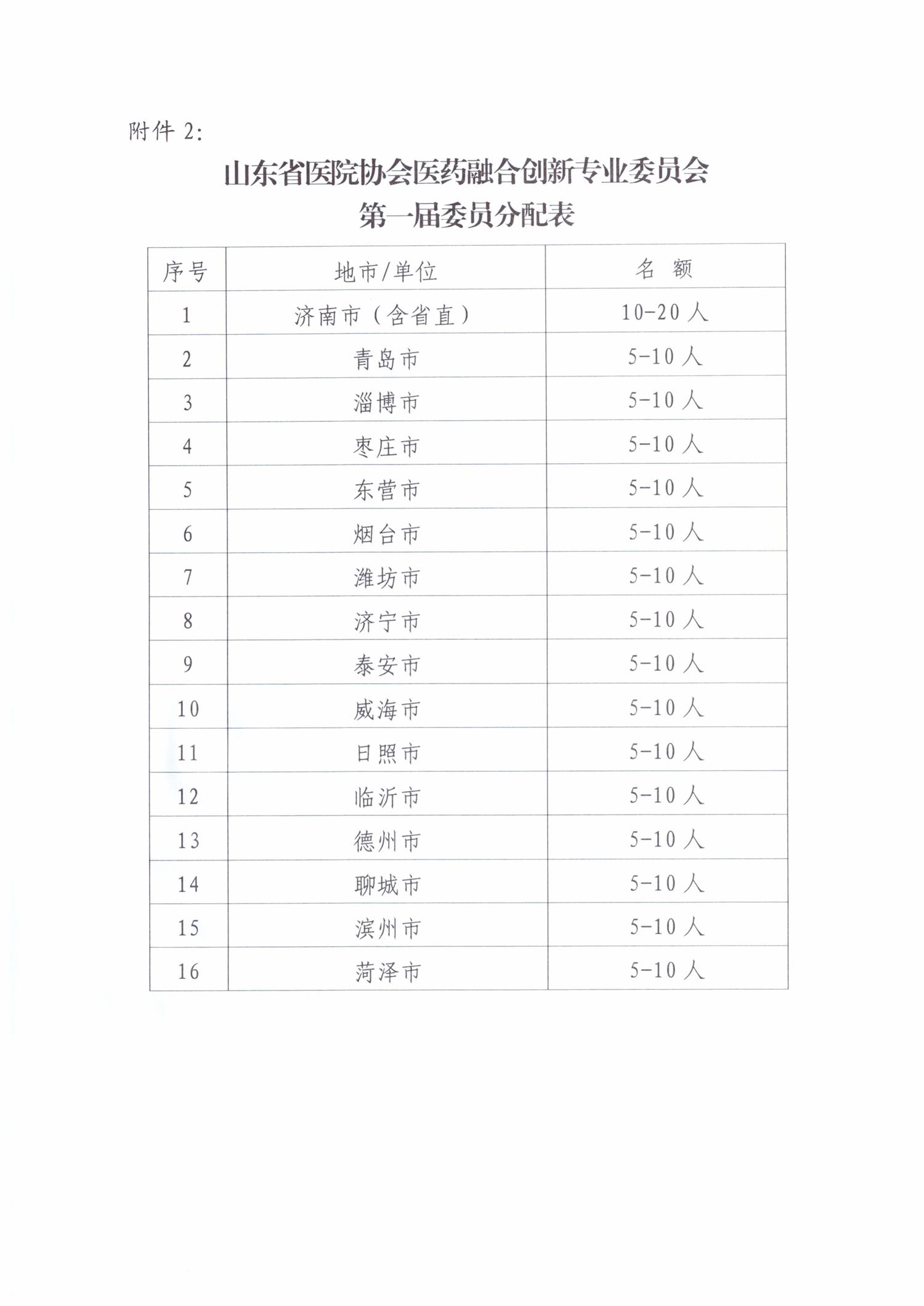关于推荐山东省医院协会医药融合创新专业委员会第一届委员候选人的函
