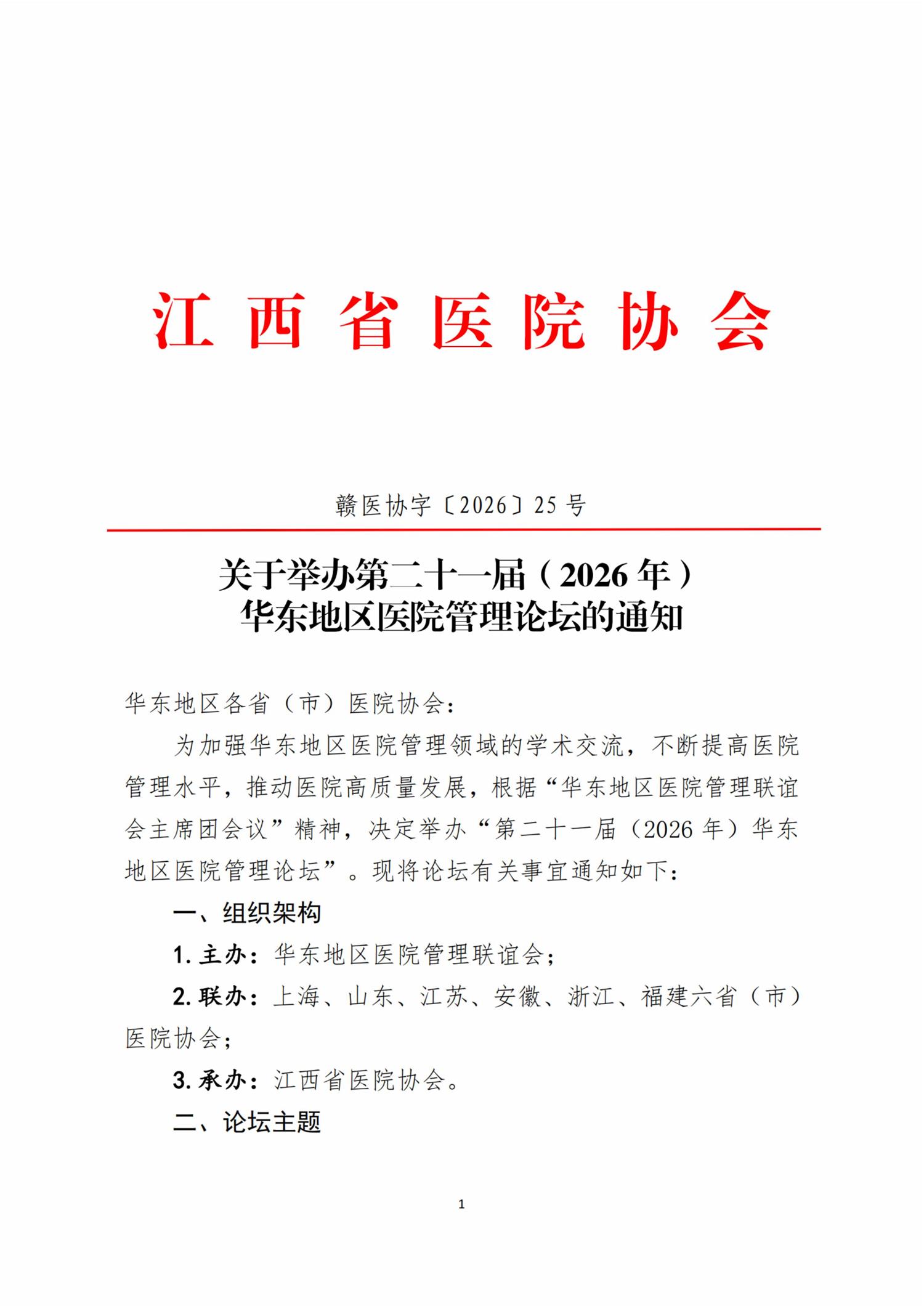 关于举办第二十一届(2026年)华东地区医院管理论坛的通知