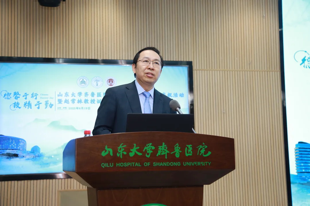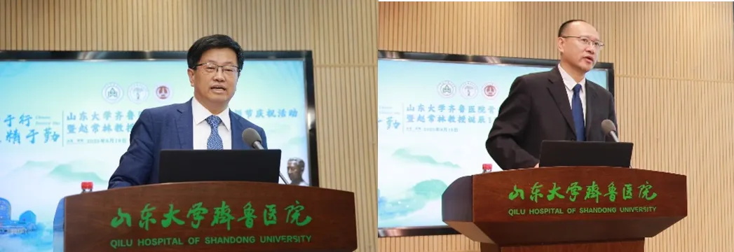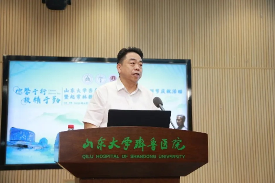 8月19日,山东大学齐鲁医院骨科在齐鲁楼F5D会议室隆重举行“双节同庆”医师节-教师节活动。齐鲁医院院长陈玉国出席并致辞,代表院领导班子向全体医师表达了节日的祝贺和崇高的敬意。齐鲁第二医院院长、齐鲁医院骨科学术带头人冯世庆,齐鲁医院副院长彭军、刘新宇,教育处处长吕明,人事处处长张东,党委宣传统战部部长李宁,科研处处长杨晓云,医师培训处处长俞水等出席活动。骨科医护齐聚一堂,共同回顾前辈足迹,致敬新时代医者。骨科主任程雷主持开幕式,他回顾了骨科在文化传承与学科发展中的重要历程,号召全体医护以赵常林教授为精神坐标,守护初心、锐意进取。