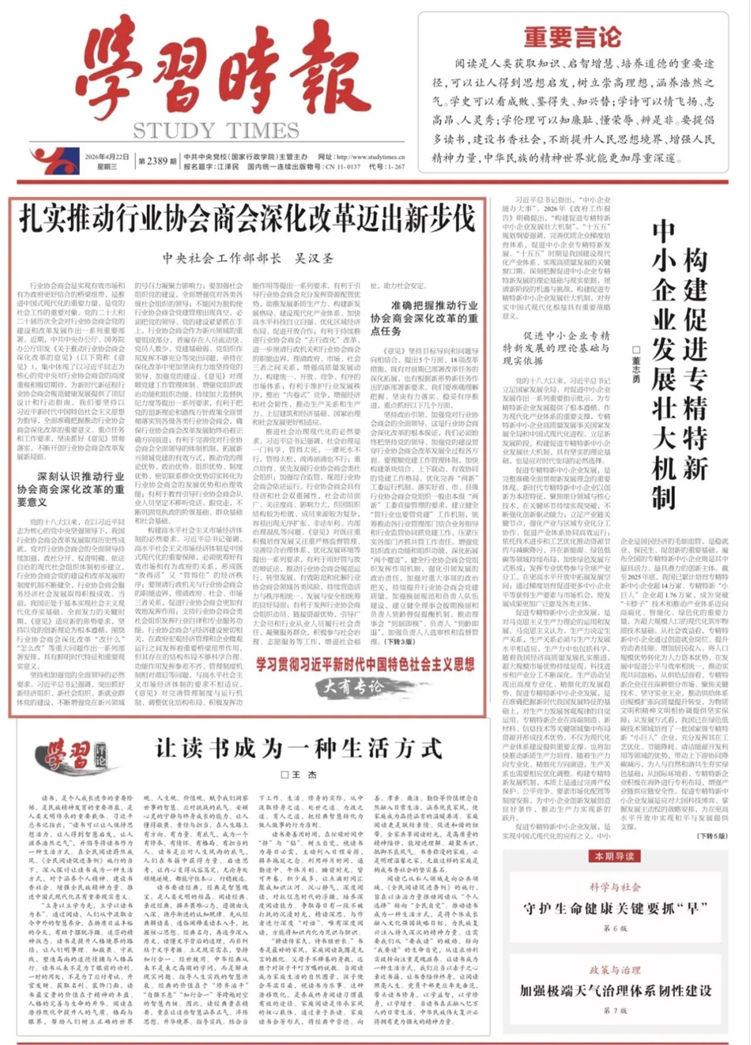 行业协会商会是实现有效市场和有为政府更好结合的桥梁纽带,是推进中国式现代化的重要力量,是党的社会工作的重要对象。党的二十大和二十届历次全会对行业协会商会党的建设和改革发展作出一系列重要部署。近期,中共中央办公厅、国务院办公厅印发《关于推动行业协会商会深化改革的意见》(以下简称《意见》),集中体现了以习近平同志为核心的党中央对行业协会商会的高度重视和殷切期待,为新时代新征程行业协会商会规范健康发展提供了顶层设计和行动指南。我们要坚持以习近平新时代中国特色社会主义思想为指导,全面准确把握推动行业协会商会深化改革的重要意义、重点任务和工作要求,坚决抓好《意见》贯彻落实,不断开创行业协会商会改革发展新局面。