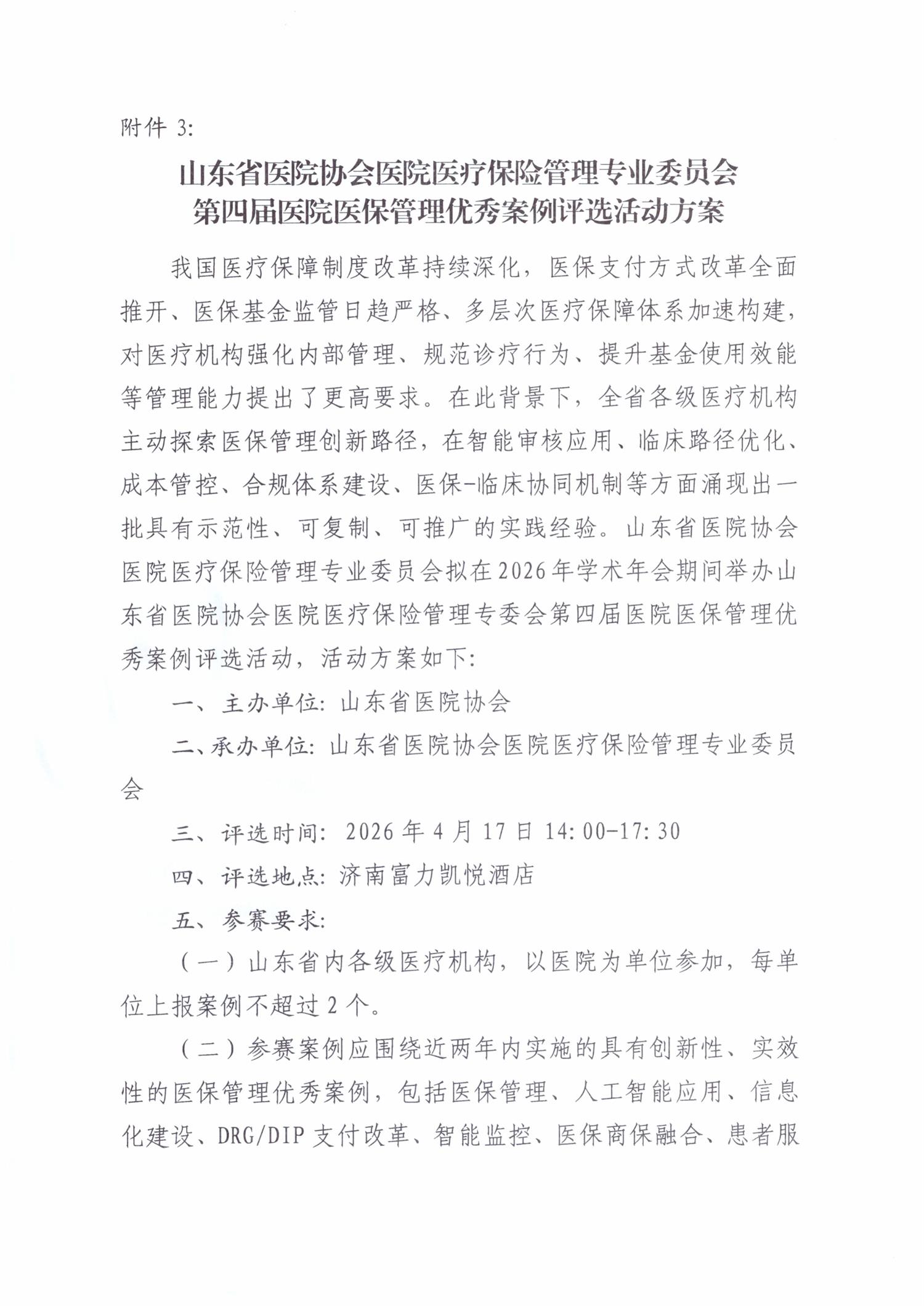 关于召开山东省医院协会医院医疗保险管理专业委员会第三届委员会换届大会暨2026年学术年会的通知