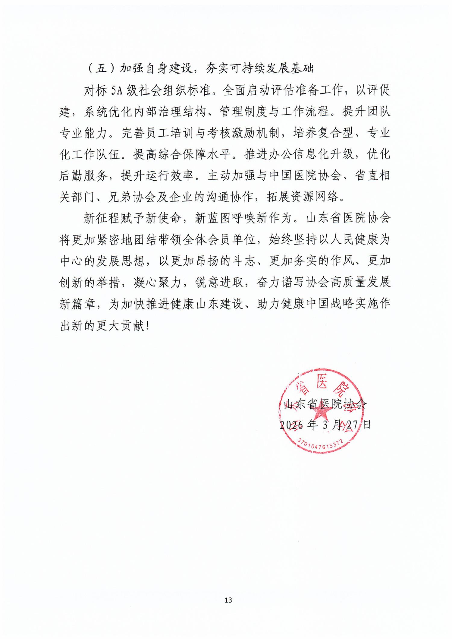 凝聚行业共识 服务健康大局 为全面助推健康山东建设贡献力量——山东省医院协会第四届理事会2025年工作报告及2026年工作要点